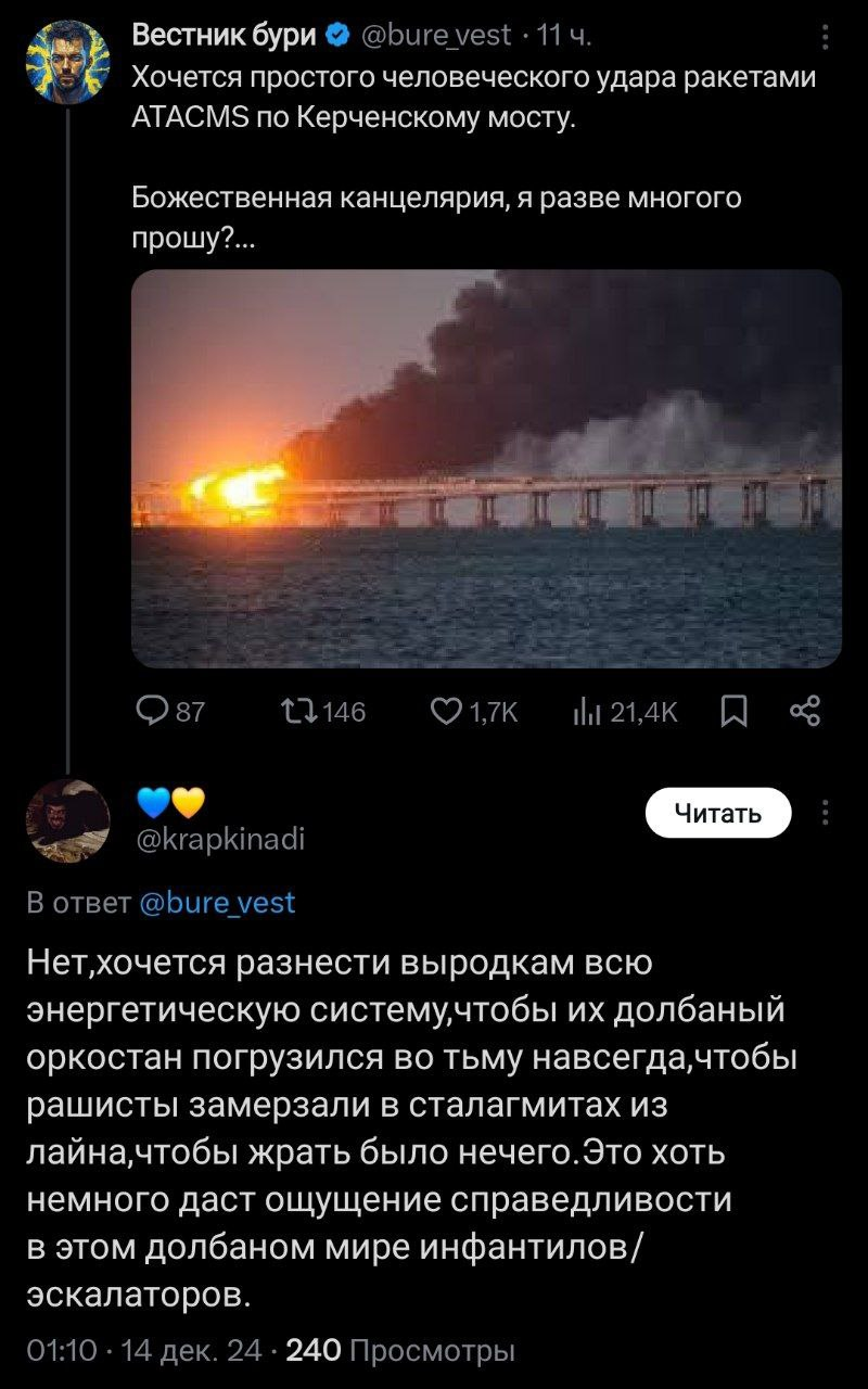 Дальше естественно не читал, опять очередной хуесос с умным видом натягивает свой манямирок на глобус. У одних кровавый тиран владимир каждый день переламывает свой и чужой народ, у других тряпка пыня третий год скулит о перемирии. Как говорятся - собака лает, сво караван идет.