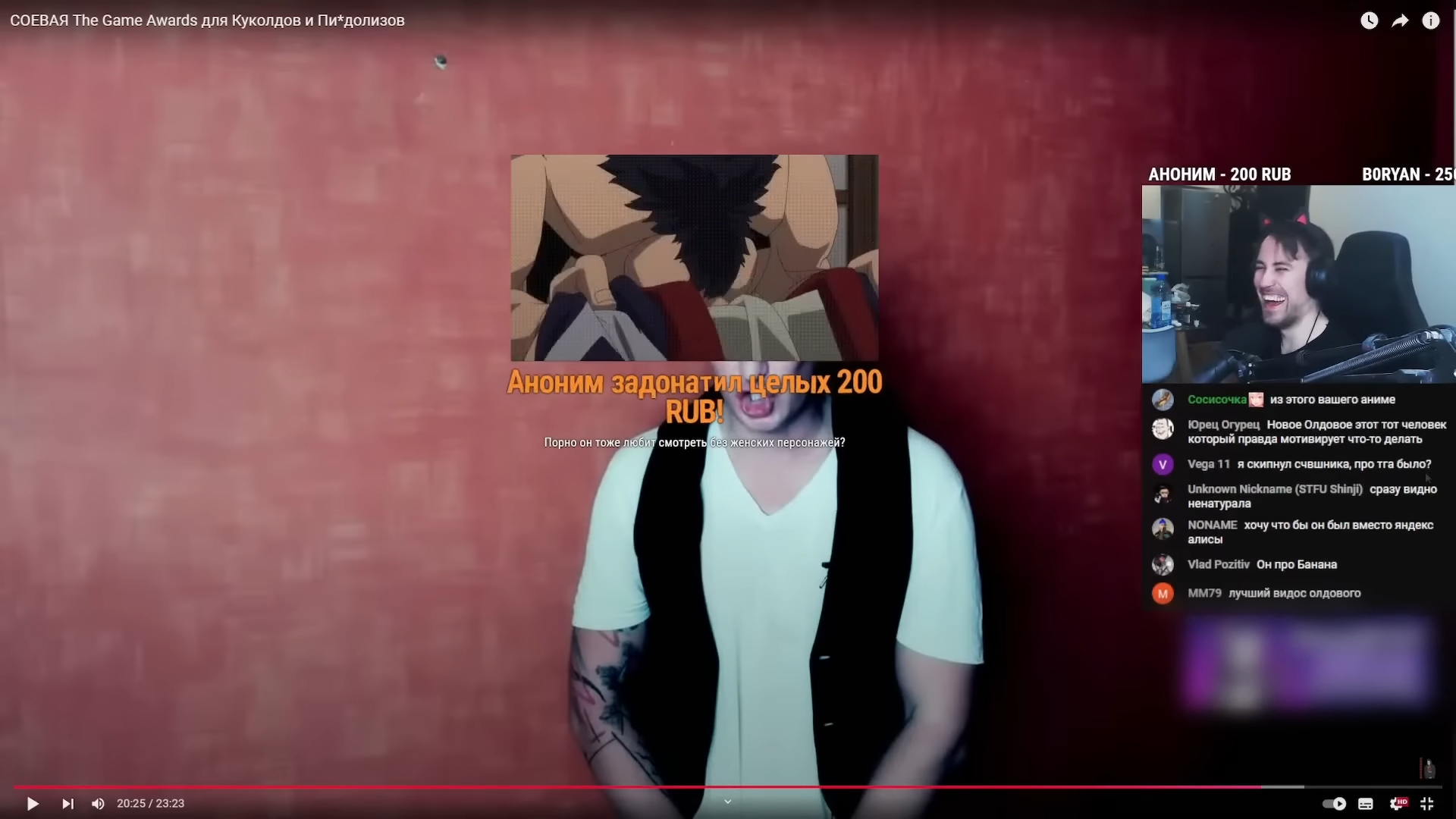 Что могу сказать по поводу последнего его высера. Наш поциент уже на грани. Ок вот смотрите, попадается кому то в рекомендации видео по теме The Game Awards и натыкается на нашего болезного. Новый зритель ожидает услышать какое то иное мнение, а вместо этого смотрит, как чувак, пытается самому себе доказать (попутно рандомному зрителю), что он в 40 лет ещё мужчина,(то есть ему даже не 60+ чтобы снимать подобное, то есть проблемы у него уже есть, в голове конечно же) снова задвигает про каких то жирножопых итд. Это знаете, вот приходит человек к психотерапевту и он ему жалуется, что его постоянно преследуют какие то виталямбы жирножопые но по сути они только в его голове, и только ему они мешают жить и он постоянно с ними борется.