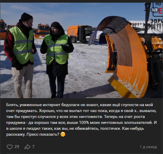 >>989754 Высота оранжевого ковша - 830мм 83см, около метра Пенкин стоит рядом с метровым отвалом и "ряяя я высокий, ряяяя я вас в школе пиздил" Распизделся карлик