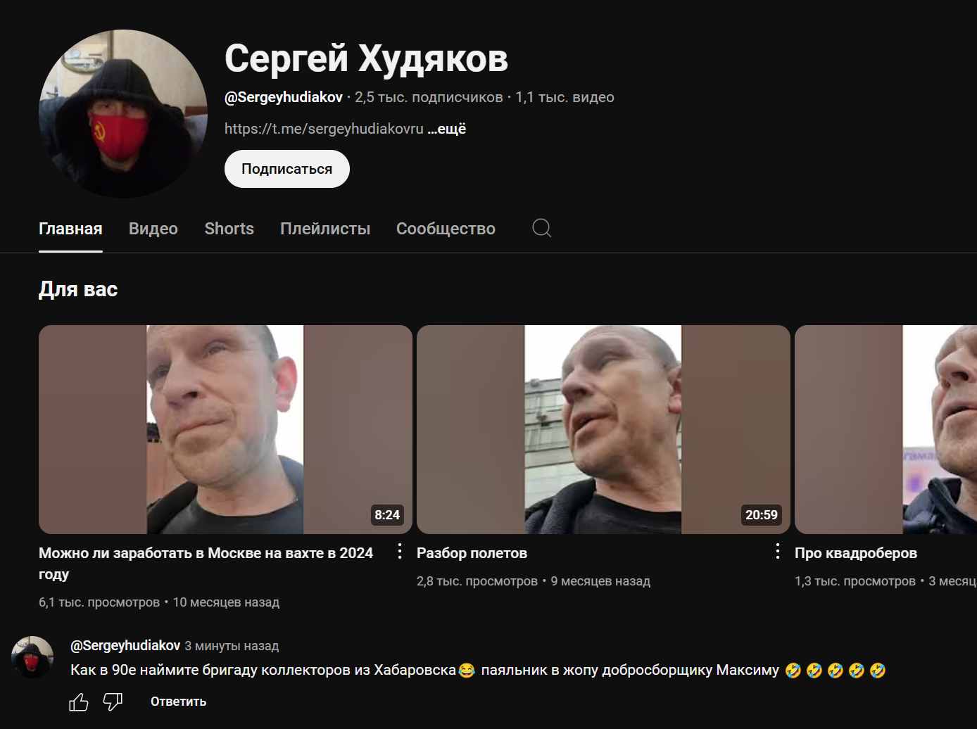 Зацените в подсосах пенкина нашел, джимцел престарелый качок в маске черепе, но на ебале написано что лошок возможно это и маскирует масками и спортзалом чтобы выглядеть круто и не харкали в спину. Все по классике сотни видосов на канале без просмотров, НО тут не соснольные. Возможно тоже отсталый какой-то, если да то сорян что поржал с тебя. https://www.youtube.com/watch?v=0VLd8rMsBcU