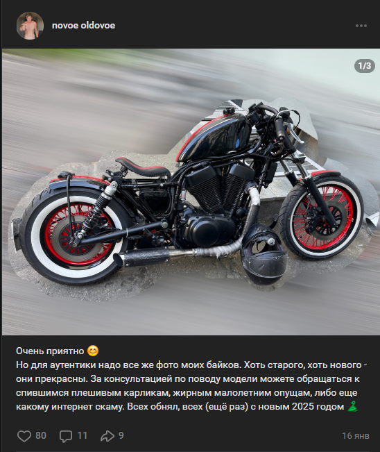 А теперь посмотри на пики. Мужичок работает электриком в небольшом городе на Урале. Живёт в частном доме, +- возраста пены, женат на красивой женщине. В гараже у него стоит ЛУАЗ, самодельный трёхколёсный мотоцикл с телегой и какой-то китайский апгрейженный мотоцикл для езды по говнам. Чел катается с друзьями по округе. Рыбачит, отдыхает, копает металл и старину. Вот это вот жизненно. А у пенкина дешёвая показуха.