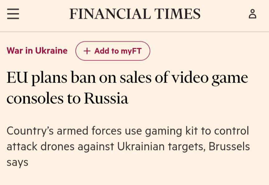 ⚡️Евросоюз хочет запретить поставки в Россию приставок PlayStation и Xbox, которые могут использоваться для управления беспилотниками, заявила верховный представитель ЕС по иностранным делам Кая Каллас.