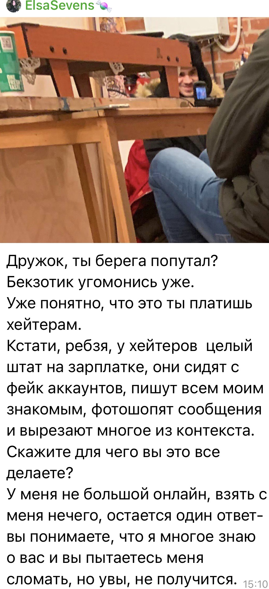 Абсолютно верно, мой друг. Я выше скинул и сообщение Эльзы ему, это давнее, уже удалено. Вот бы еще задеанонить эту пиявку до конца, поедет к хозяину в места не столь отдаленные, он же вроде деньги а криптокошелей благотворительных фондов пиздит.