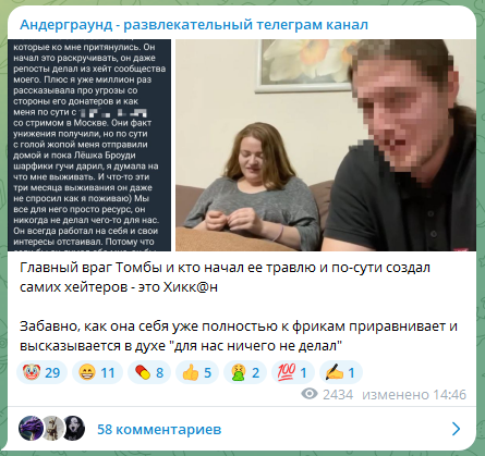 Предыдущий год хиккан всё намекал, что сольет какой-то компромат (но так и не слил) на Броудиху и Усачева, периодически истерил буквально на эту тему на своих стримах, как женщина которую кинул папик олигарх какой-нибудь.