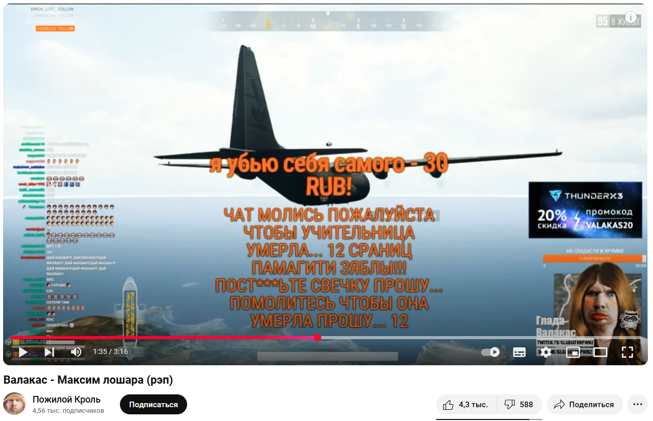 >>992085 >А, ещё помню был мудила-донатер, бля не помню никнейм, очень известный. Торчал на всех стримах когда была перхоть, и всегда заносил хорошие суммы. Пропал? Болотные звуки что-ли? Тот, который донатил перхоти и хрюкану на то чтобы те на стриме сосались Что сейчас с ним неизвестно, но в начале 2023 был на стриме хрюкана при просмотре видео о перхоти https://www.youtube.com/watch?v=N4WJVh44fh4