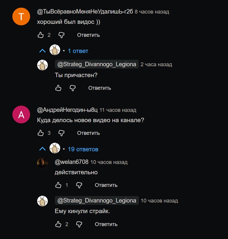 У Стратега есть только его ютуб канал, никаких тг каналов, вк пабликов, страниц в твиттер, есть дон /strateg/