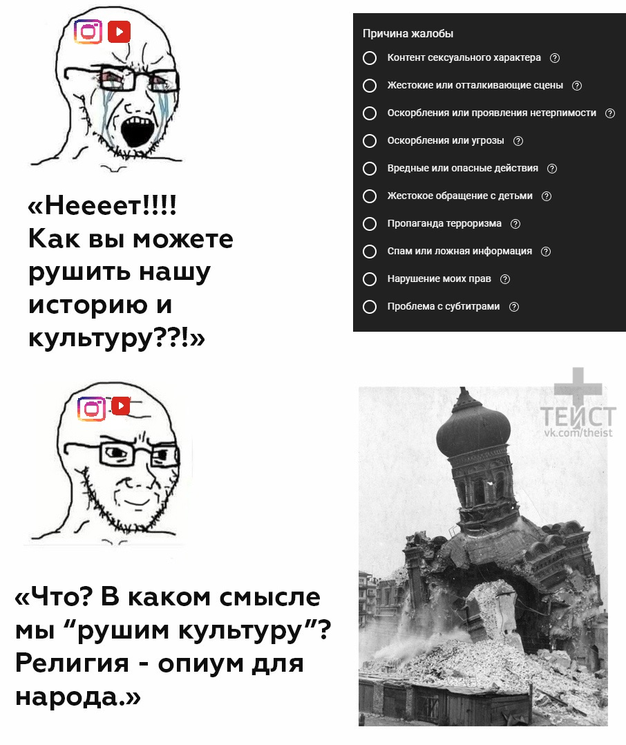 >>583751 Лол с дизлайкающих дурачков альт-райтов, особенно с тех что выросли в пост совке и должны хоть немного понимать, что коммуняки-большевики в СССР взрывающие не принадлежащие им церкви вообще никак не соотносятся с капиталистическими корпорациями, которые имеют полное право устанавливать свои правила на своей территории. Понятно что это реднекам в США можно в уши что угодно ссать и хоть Гейтса, Брина с Цукербергом большевиками называть и обязательную вакцинацию марксизмом, потому как в США кого-то хоть отдаленно похожего на большевиков или марксистов со временем маккартизма и близко нету, но тут-то …