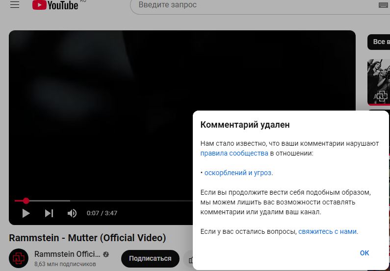 >>500277 >>500545 Модерация Ютуба не очень расторопная. Где-то месяц назад отправлял жалобу на видос с рекламой цп, так его до сих пор не удалили. Че уж говорить о комментах...