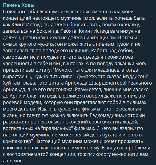 Что же касается его раннего алколизма - в это верю, как и в отвал печени. А вот то, что его Блекстар прям отхуярили - нет. Когда это произошло в своё время, к этой инфе половина аудитории Ховы относилась скептически, и по правде говоря, особых пруфов этому нет. При чём, раньше Пёс заявлял, что его "слегка побили", а в последствии он пиздел, что его прям отпинали. В этом и кроется пиздабольства Хованского - он любой факт приукрашивает или приуменьшает. Как и в случаи с Нойзом, где тот его реально как женщина ударил, а вони от Хована было на весь Питер(и это со слов того, кого в школе хуярили до кровавых соплей, я напоминаю)