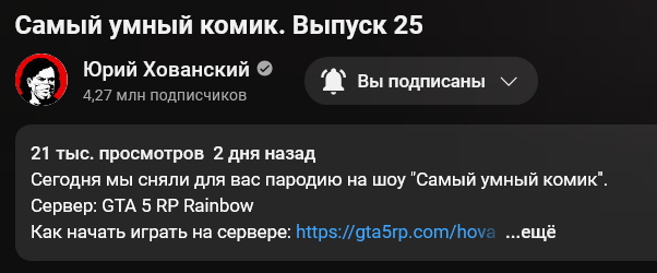 >>987539 Илюха никогда ему ничего плохого не желал. В 2020 году он объявил ультматут: гта рп говно, больше никаких продажничей даже за самые большие деньги. Казалось бы это должно натолкнуть на определенные мысли, но Юрец как водолаз глубоководного плавания решил подобрать со дна Деда Балдежа и попросил у него контакт серваков Как итог спустя четыре года канал мертв чуть менее чем полностью. Даже буки больше рекламу не покупает