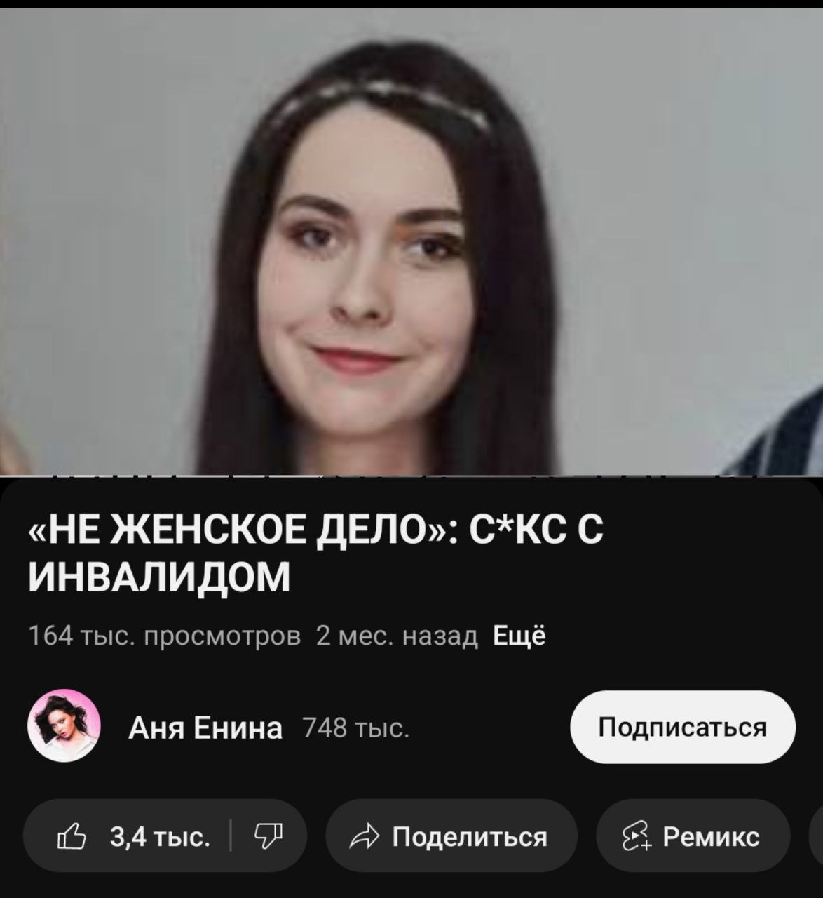 >>986180 Как ее будет ебать другой чел, зная что на нее залазел вонючий козел, давал на ротан, это пиздец зашквар. Только немытый инцел типа педоузбека согласился бы.