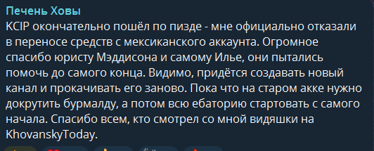 После травли, алкогольных запоев и отсидки на крестах уехал, где нюхал газы матерых зэков уехал в Сербию, прожив год с тараканами в розовой комнате купил гражданство Мексики за 80к грина. Пересодил волосы в Турции. Так Хованский пытался начать жизнь с нуля, но сейчас живёт как бомж. Бросил (и опять начал) пить, опух, подсел на казино.