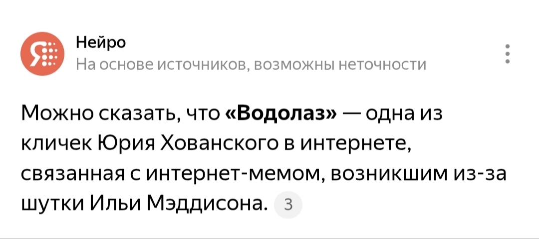 Видимо хованский писал жалобы в яндекс. Раз нейросеть так яростно отстаивает позицию что водолаз не является его кличкой. Но под натиском аргументов все таки пришлось признать очевидное.
