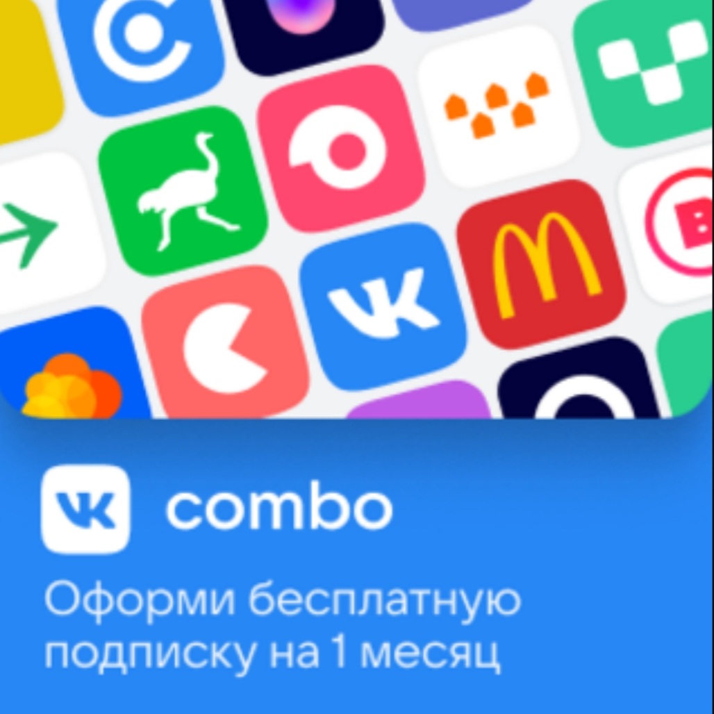 Халявный вк комбо на месяц дает: бесплатную Музыку ВКонтакте без рекламы в фоновом режиме, или офлайн через приложение Boom двойной чизбургер в Макдоналдс за 99 рублей каждый день Скидку 10% в “Ситимобил”, “Такси ВКонтакте” Скидку 10% в Delivery Club и “Еде ВКонтакте” на 10 заказов в месяц Скидку 50% на одну аренду в каршеринге YouDrive и кэшбек 10% от последующих аренд Дополнительные 16 гигабайте в Облаке Mail.ru Скидку 7% на покупку умной колонки “Капсула” 20 000 кино и сериалов в онлайн-кинотеатре Okko до 21.03.2021 https://vkcombo.ru/promocode?utm_source=DA Промокод:DA2M250765