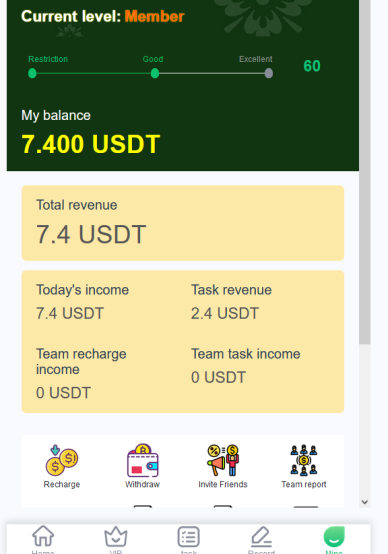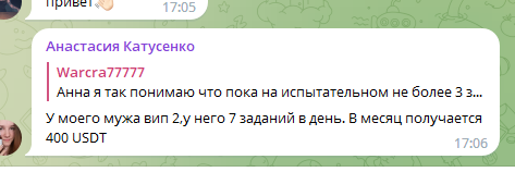 В начале дают 5USDT за регистрацию В обычном аккаунте доступно 3 таска в день по 0.8usdt Дальше нужны какието вип статусы самый первый начинается от 120USDT вполть до 10000$ где можно получать больше заданий