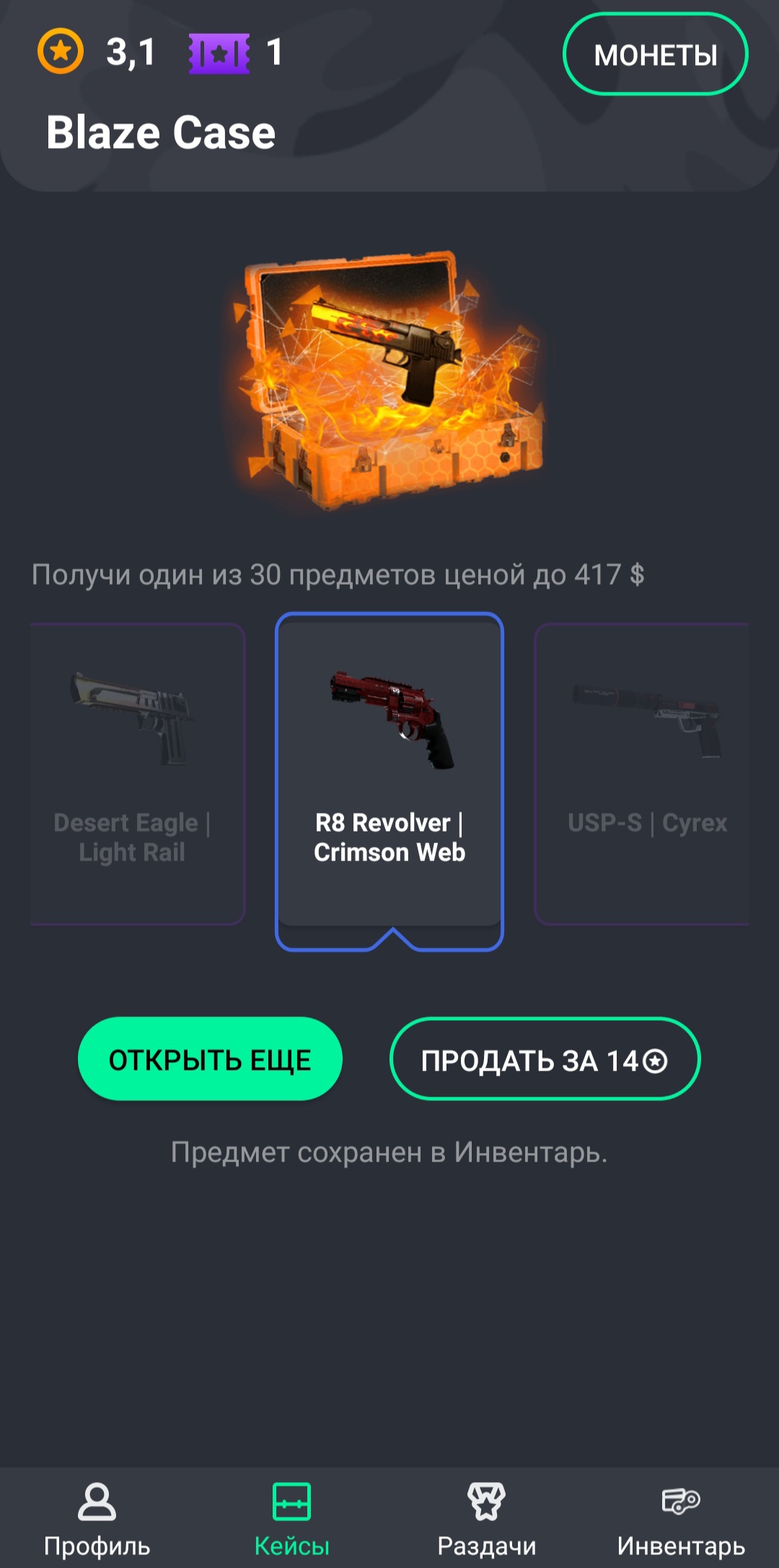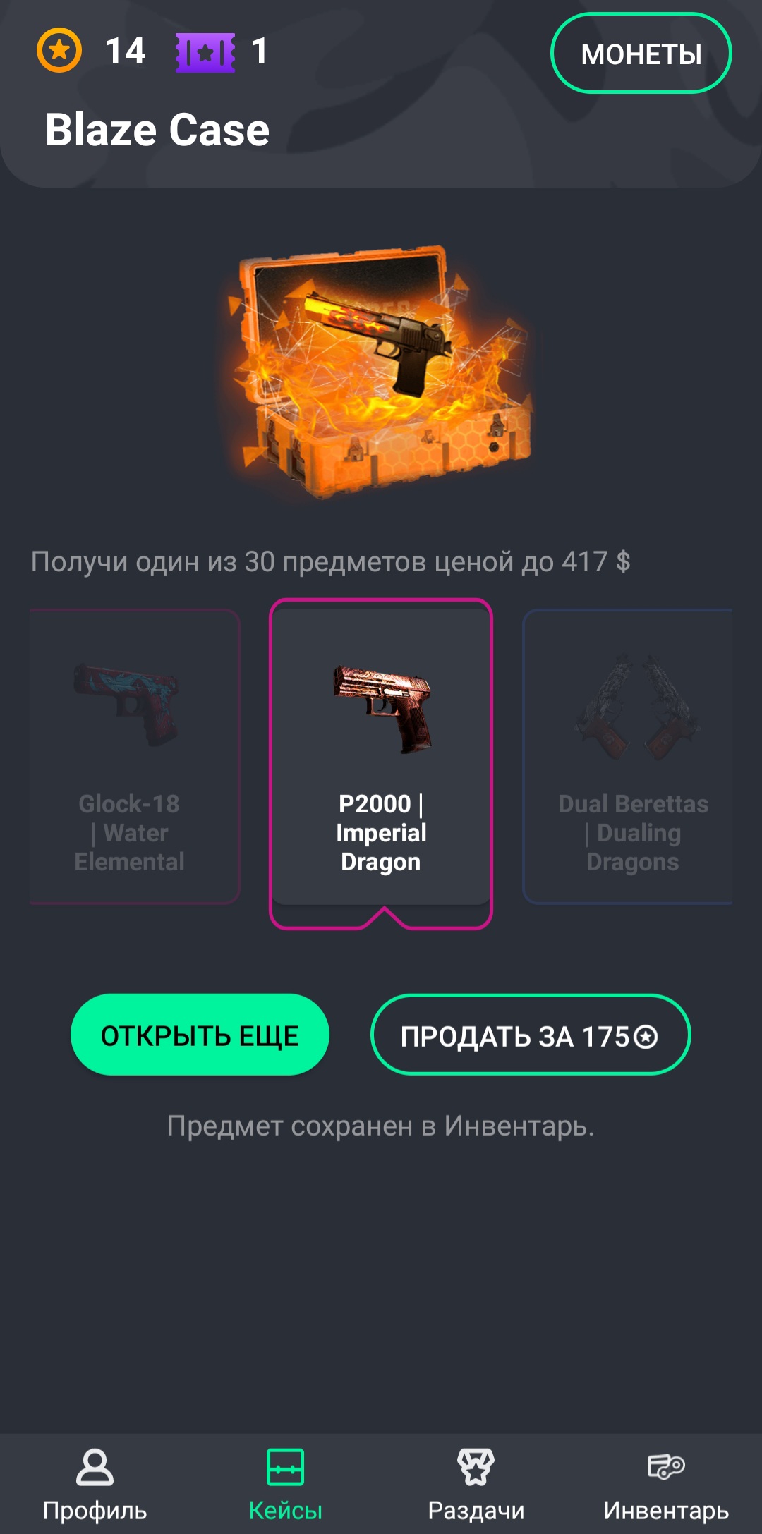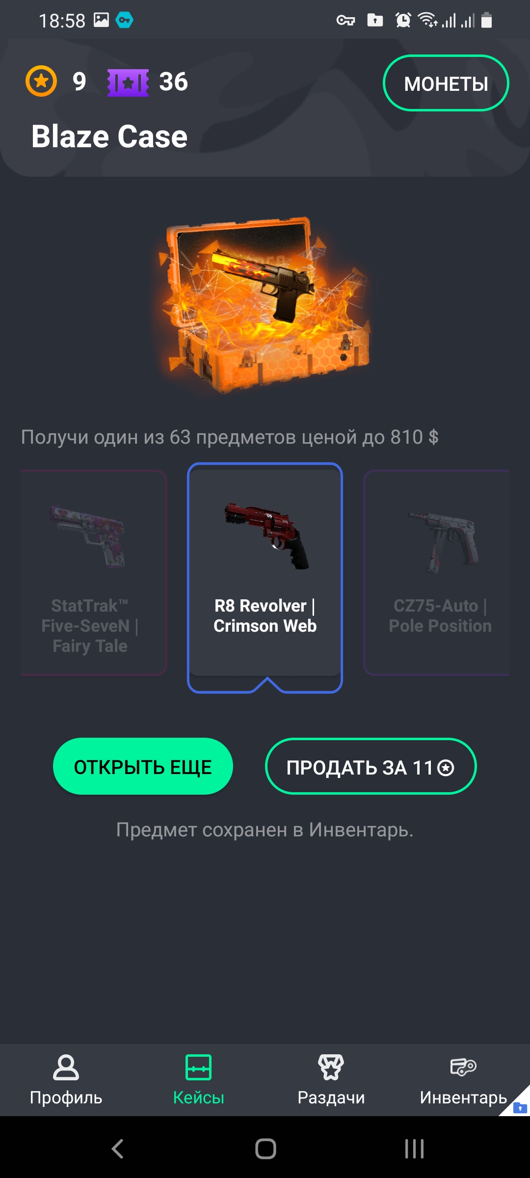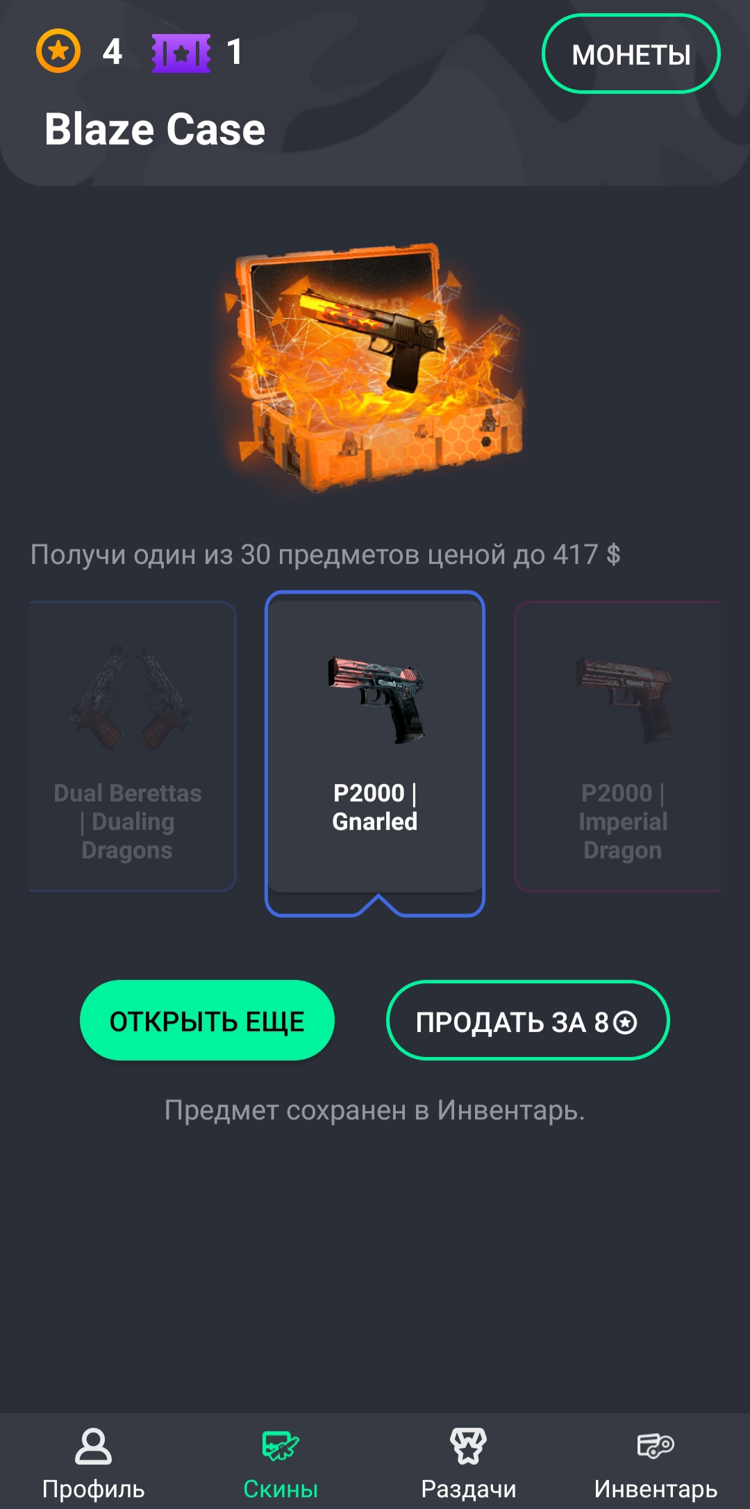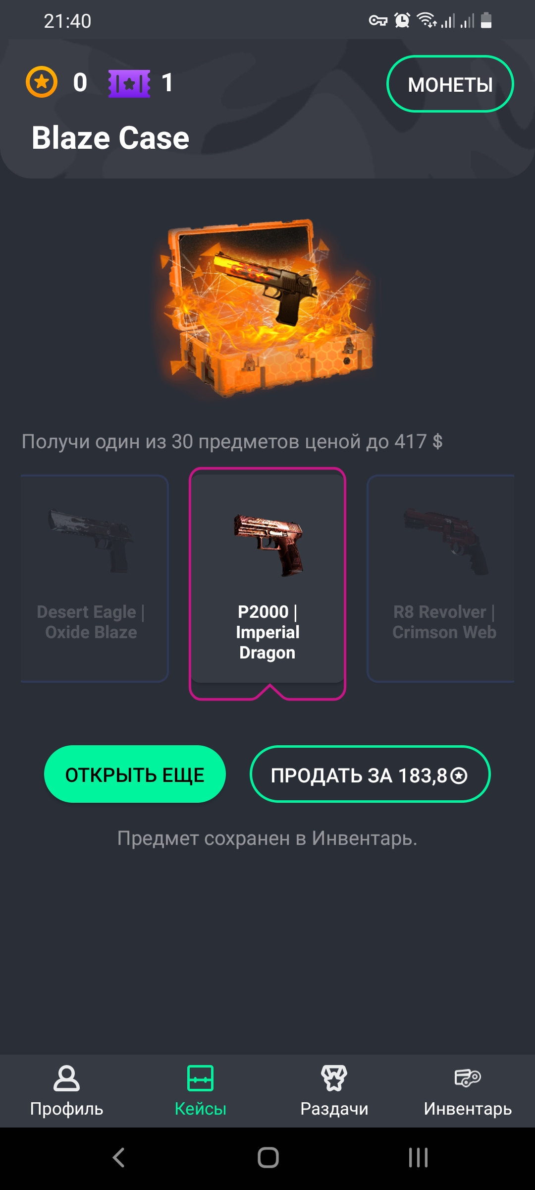 БЕСПЛАТНЫЕ СКИНЫ CSGO Сап, есть одна тема, качаем приложение GoCaseshttps://play.google.com/store/apps/details?id=com.gocases. Вводим промокод J89eRLN9 на 20 монет (не бойтесь, я за вас вообще нихуя не получу, я так самого себя рефал, это нихуя не дает, если зотите поищите другие коды, все по 20 дают), так же у вас будет еще один бесплатный кейс, на 25+ монет, итого имеем уже на старте 50~ монет. Кликаем каждый день на забрать бонус, забираем от 1 до 5 монет. Для регистрации нужна gmail почта, для скинов нужен любой STEAM аккаунт на котором включен SteamGuard (защита включена). Т.е. даже не надо закидывать 5$ для разблокировки торговой площадки, главное чтобы обмен работал и всё. Чуете чем пахнет? Это все можно абузить, уже как пару месяцев оттуда вывожу стабильно скины, никто не мешает тебе сделать по 20-30 gmail, и столько же аккаунтов STEAM. После получения переводим на свой главный аккаунт (перед этим ждём 7 дней). Самый дешевый кейс стоит 69 монет, там скины 8-15 рублей стоят, но можно пооткрывать кейсы подороже, за 109 монет. Мне выпадали шмотки и по 100 рублей (p90 virus, usp-s cyrex и т.д пруфы на них ниже, потому что только 4 картинки помещается). Так же можно выполнять задания за монеты, сам выполнял парочку, но это нелегко, так можно выполнить по типу установить ТикТок и т.д., пару сотен точно заработал таким образом. В день уходит минут по 5 на сбор всех монет со всех аккаунтов. Сами аккаунты (что стим, что гугл почты, регаются тоже быстро, в день удаваллсь по 7-8 штук делать аккаунтов).