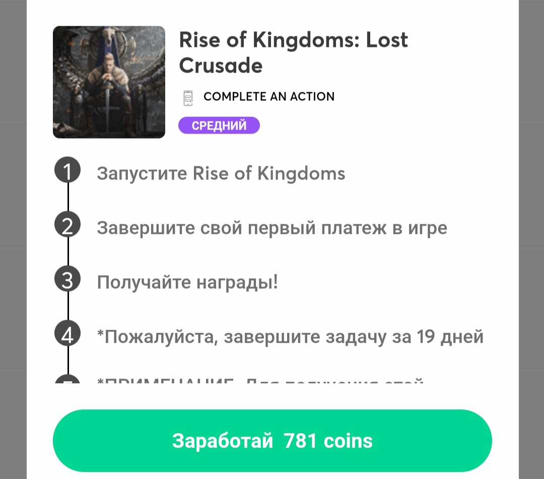 414 монет. Нажимаем заработать и выбираем "Fyber" Выбираем данное задание War and magic Нажимаем получить 414 монет и скачиваем приложение. Заходим в приложение и проходим обучение. Далее нажимаем на крестик в правом верхнем углу и покупаем пак за 0.99$ И возвращаем деньги по той же схеме