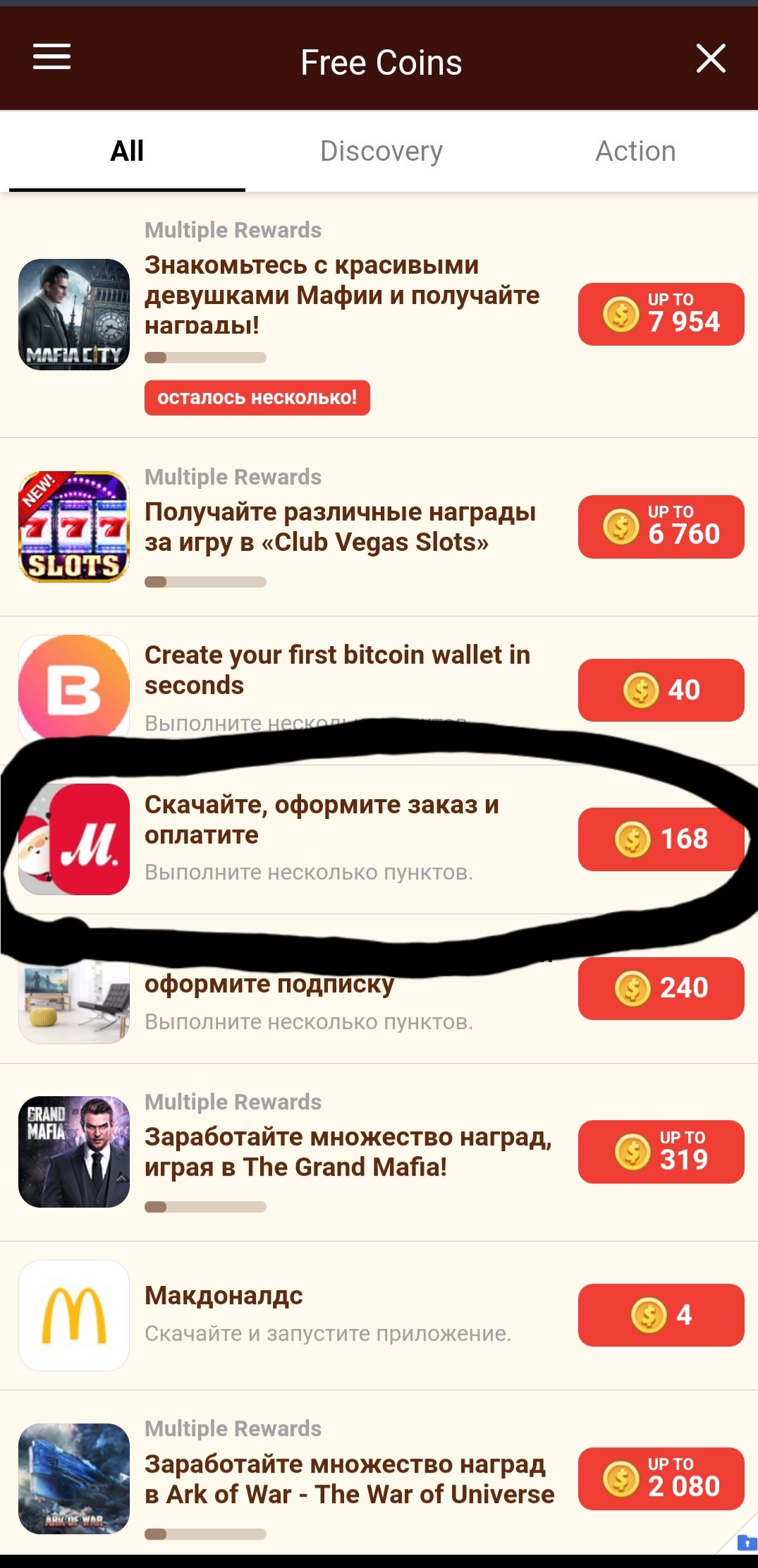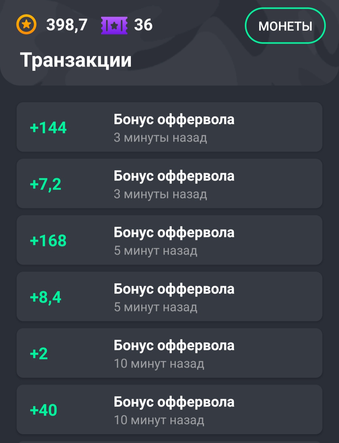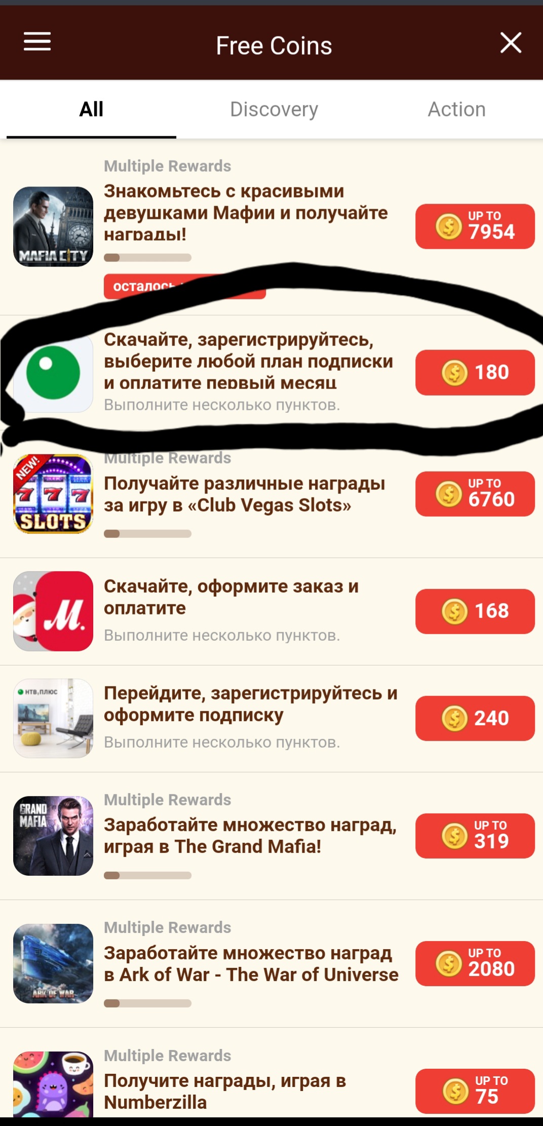 >>16089 >>16087 Итак, способ заработать сначала 700+ монет. Для начала, оформляем подписку (чтобы получить на 20% больше за выполненные задания, так же потом на всякий случай можно поучаствовать в прайм-раздаче, потратить синие билеты), ее потом можно будет отменить, платежный способ указываем любой, если есть Qiwi, то окей. Для начала способ без вложений. Задание 120 монет. Выбираем "Tapjoy", выбираем данное задание "Norton secure vpn". Нажимаем получить 120 монет и набираем в гугле norton secure vpn андроид, скачиваем с любого сайта. После того, как скачали устанавливаем и оформляем 7 дневный пробный период, нажимаем попробовать и активируем. После того как получили вознаграждение, сразу отменяем пробный период. Задание за 180 монет. Нажимаем опять на "Tapjoy". Выбираем задание от НТВ (скачайте и зарегестрируйтесь и выберите любой план). Нажимаем получить 180 монет и скачиваем приложение. После того, как скачали нажимаем на три полоски в верхнем левом углу. И регистрируемся, потом выбираем "Подписки" и выбираем "Vip Play". Нажимаем попробовать и активируем. Там бесплатный 7 - дневный период, позже отменяем. Задание на 168 монет. Нажимаем "Tapjoy". Выбираем задание от МВидео. Заходим в приложение и выбираем любой город, далее регистрируемся по номеру телефона. Выбираем любой товар и добавляем его в корзину. Выбираем самовывоз. И нажимаем "При получении". И нажимаем заказать. Далее идем в личный кабинет и отменяем заказ. Задание на 144 монеты. Скачиваем приложение "KUPI VIP". Скачиваем и добавляем любую вещь в корзину. Оформляем заказ и выбираем "Оплата при получении". Когда получили монеты, отменяем заказ.