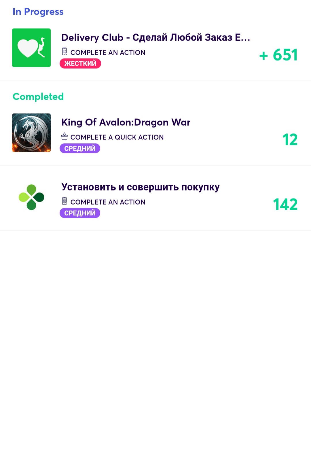 UPD Вот если что вот так выглядят эти задания 1) Norton VPN (пик1) 2) НТВ (пик2) 3) Мвидео (пик3) 4) KUPI VIP (пик4), он находится в ironSource, пишет что надо заполнить данные, но покупку тоже надо как и в других приложухах