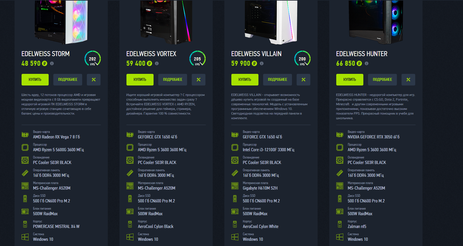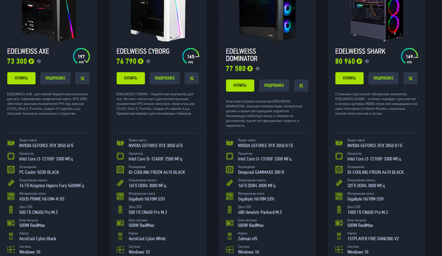 Планирую взять в ближайшем будущем комп, хочу готовую сборку, без раздумий. При поиске наткнулся на компанию эдельвейс. Норм ваще компания и стоит ли брать там готовую сборку? Если да, то какой из этих вариантов самый охуенный для работы и поигрываний? Пока смотрю в сторону железа с 32 гигами оперативы