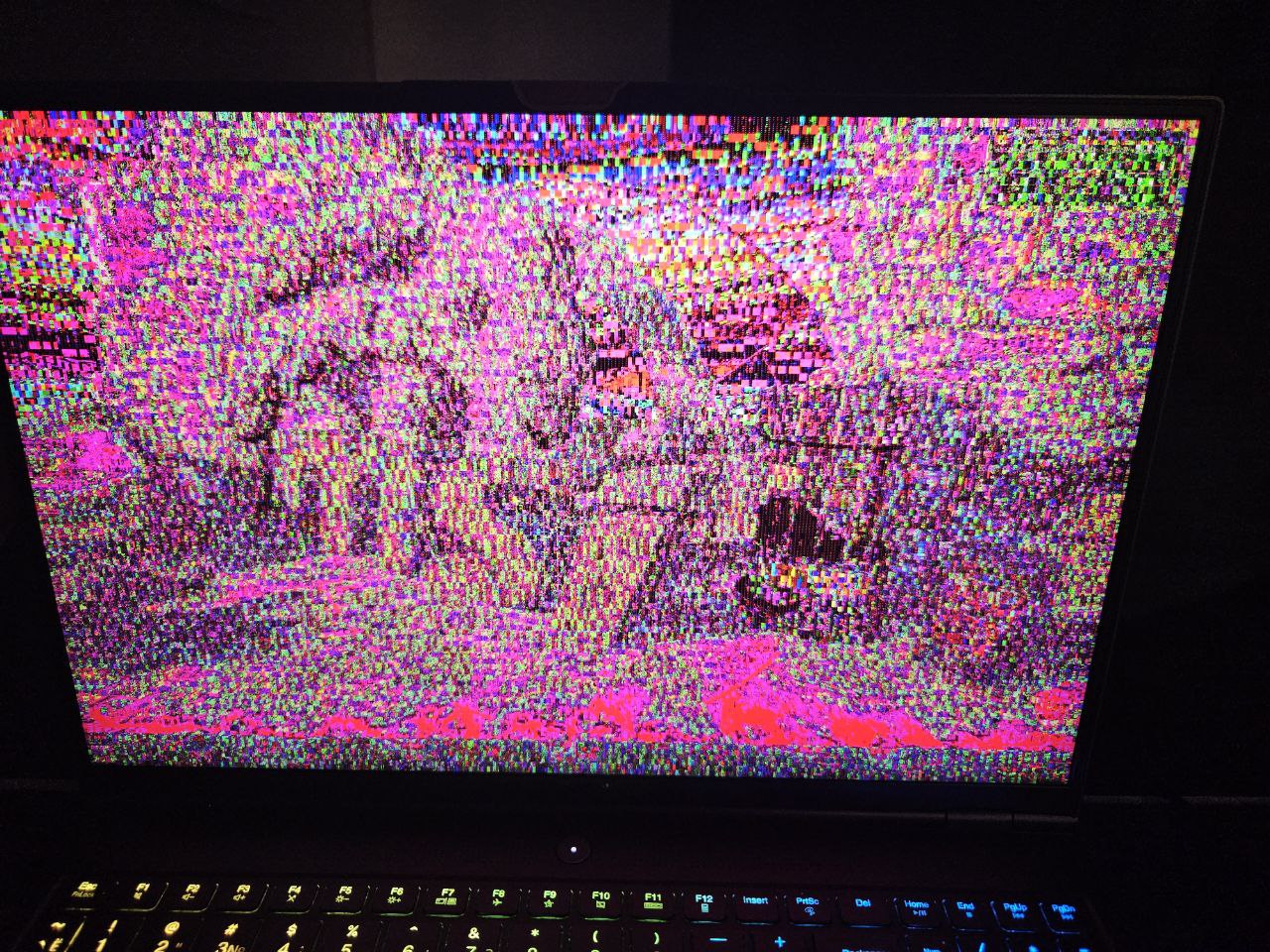 Начала умирать видеокарта, походу. Как это выглядит приложил на пике. Иногда же просто экран уходит в полностью черный цвет, но не выключается.