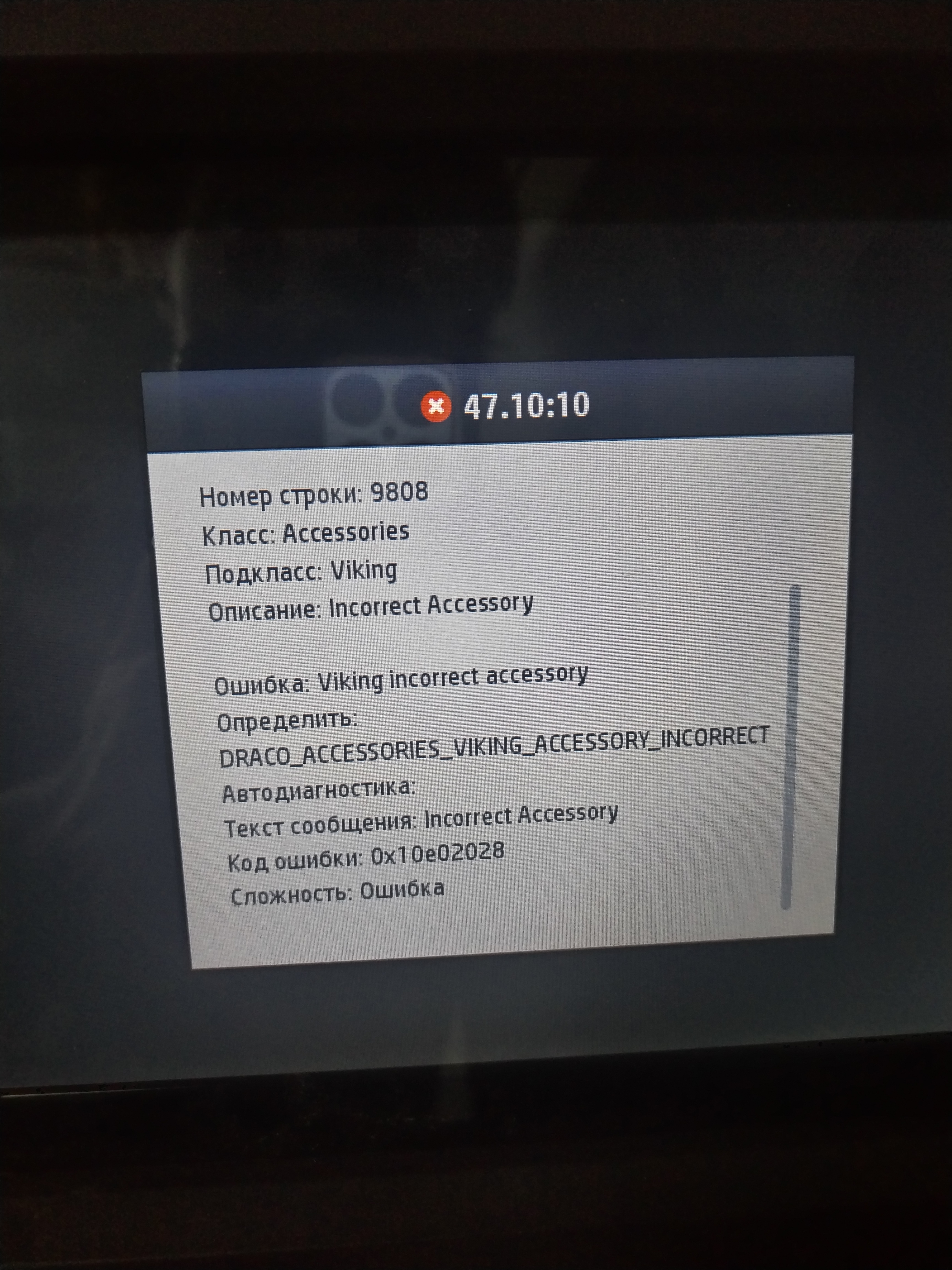 После установки и активации в меню диагностики трёх литровых картриджей появилась ошибка 47.10:10 . Есть способ устранения в меню диагностики, но меню диагностики не открывается. Помогите
