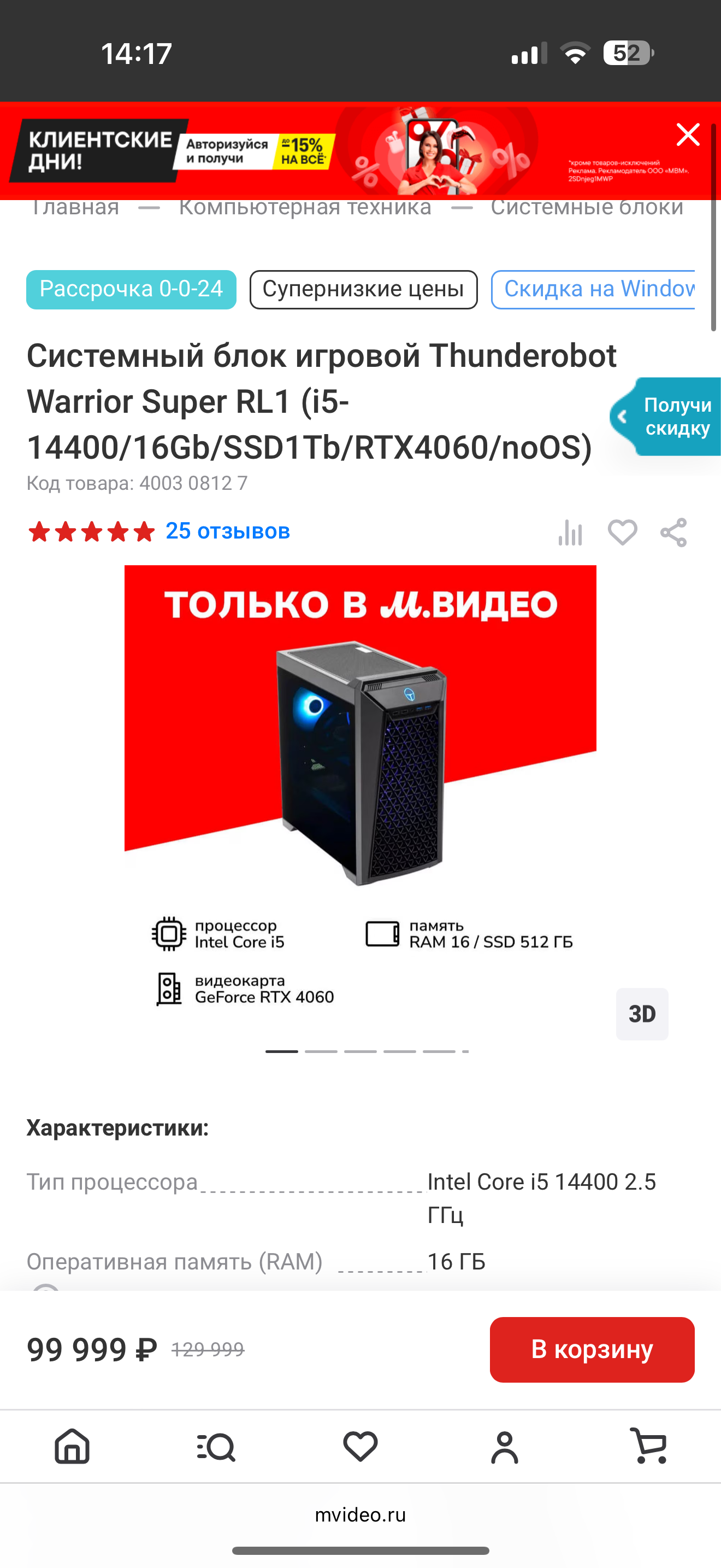 Решил купить новый пк, смотрю варианты. Прикрепляю скрин самого популярного на МВидео. Эксперты, ваши мнения? Сам не сильно в этом разбираюсь. Да и вопрос даже не в переплате, а больше в качестве. Нормальный вариант или возможно даже лучше будет самому собирать? Бюджет 100-130 к