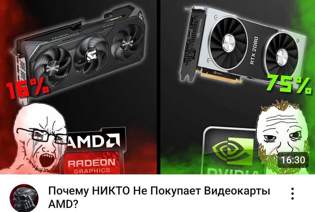 ну вот 5050 скоро выходит, наверняка будет зеркальная ответочка конторы пидорасов, те же 8 гб и производительность как 6600 за 200 баксов.