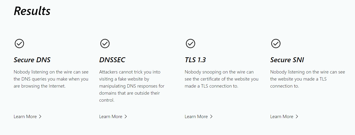 >>7347127 Что ещё объяснять? Браузер использует свой отдельный от системы DNS (DoH). В настройках можно посмотреть. А вот вся остальная система, использует DNS роутера, который апстримит Cloudflare DNS на 53-ем порту. Их спуфят и поэтому все запросы в консоль выдают подменные значения. >>7347131 >ведь провайдер, видя, что пользователь ссылается на 1.1.1.1 И видя это можно блокировать запросы к Cloudflare или модифициовать незашифованные. Но если бы блокировали зашифрованные DNS (DoH), уже никакие бы браузеры не работали, так как они уже несколько лет как принудительно переведены на DoH из коробки. При такой блокировке обычный пользователь ни к какому сайту не смог бы подключиться, чтобы хотя бы узнать почему не работает Интернет.