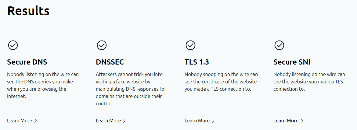 >>7346761 Т.е. ты ламер и не понимаешь как это работает? Чел.. Я захожу на сайт клаудфлер и вижу, что он подтверждает, что DoH включен и работает. Что ты там подменять собрался? Плюс прову ничего не стоит залочить обращения к четырем единицам хоть напрямую хоть по doh т.к. они знают адрес куда ты ходишь