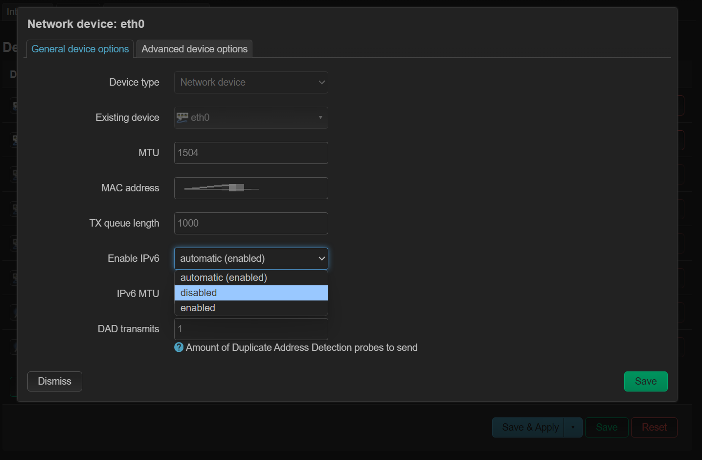 Полез выключать ipv6 в устройствах, т.к. провайдер его всё равно не поддерживает. При попытке отключить его на eth0, у роутера не получается применить/сохранить изменения вкупе с отвалом всех соединений. Приходится вручную отключать/включать питание для восстановления работы. Это баг или фича? Попенврот последней версии.