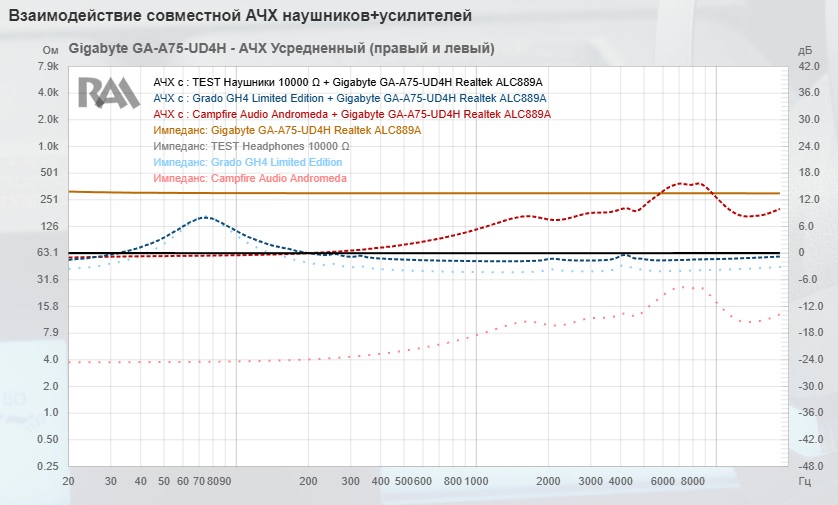 >>7277276 >Карта не может "не раскрыть" наушники Может перекашивать итоговую АЧХ в связке, может изначально заваливать края АЧХ, может не дать на наушники нужное количество тока, что приведёт к изменениям в подаче НЧ, может ловить наводки и передавать их в полезный сигнал. Ты снова берёшь за норму идеальнейший вариант и проецируешь, в то время как у большинства материнок стоит вот такое (и это не самый худший вариант): https://reference-audio-analyzer.pro/report/amp/gigabyte-ga-a75-ud4h.php