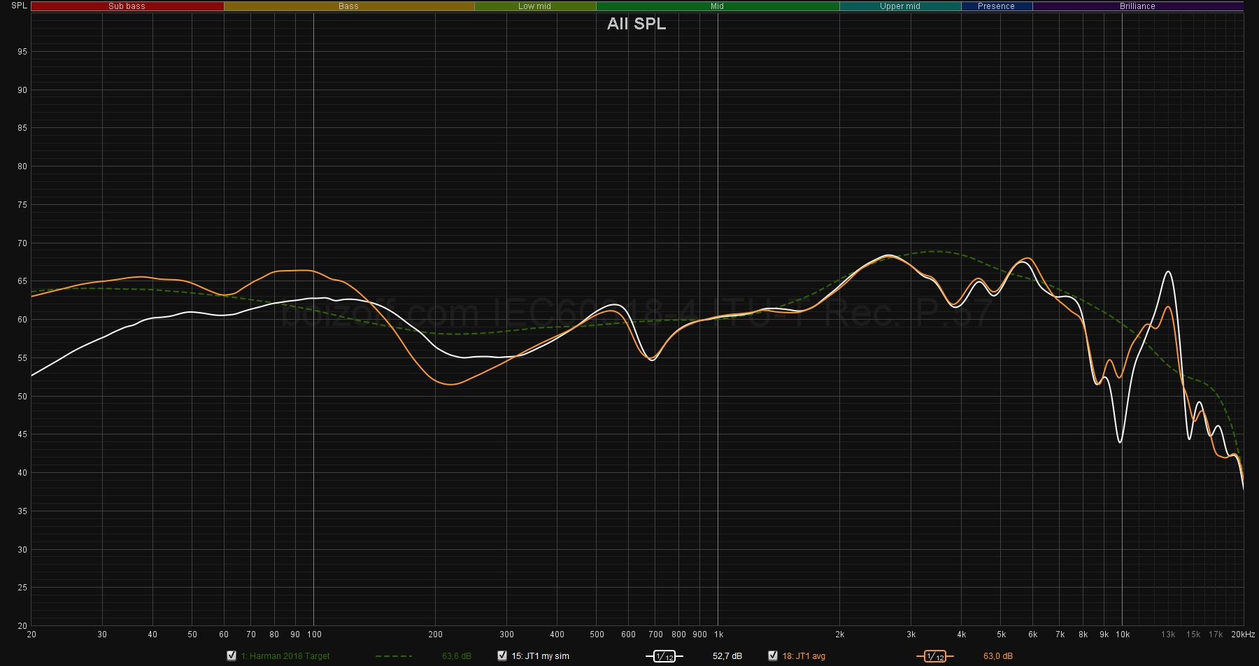 >>7277205 >Не понятно только зачем 300 - 1k полку подняли Это таргет JM-1 в своём оригинальном, исходном исполнении имеет тильт с -0,8 dB/Oct, который нихуя не согласуется с исследованиями и вообще от мира колонок, а не наушников. Кринакл там окончательно няканулся с таргетами. Вот JM-1 без тильта уже что-то отдалённо похожее на правду.