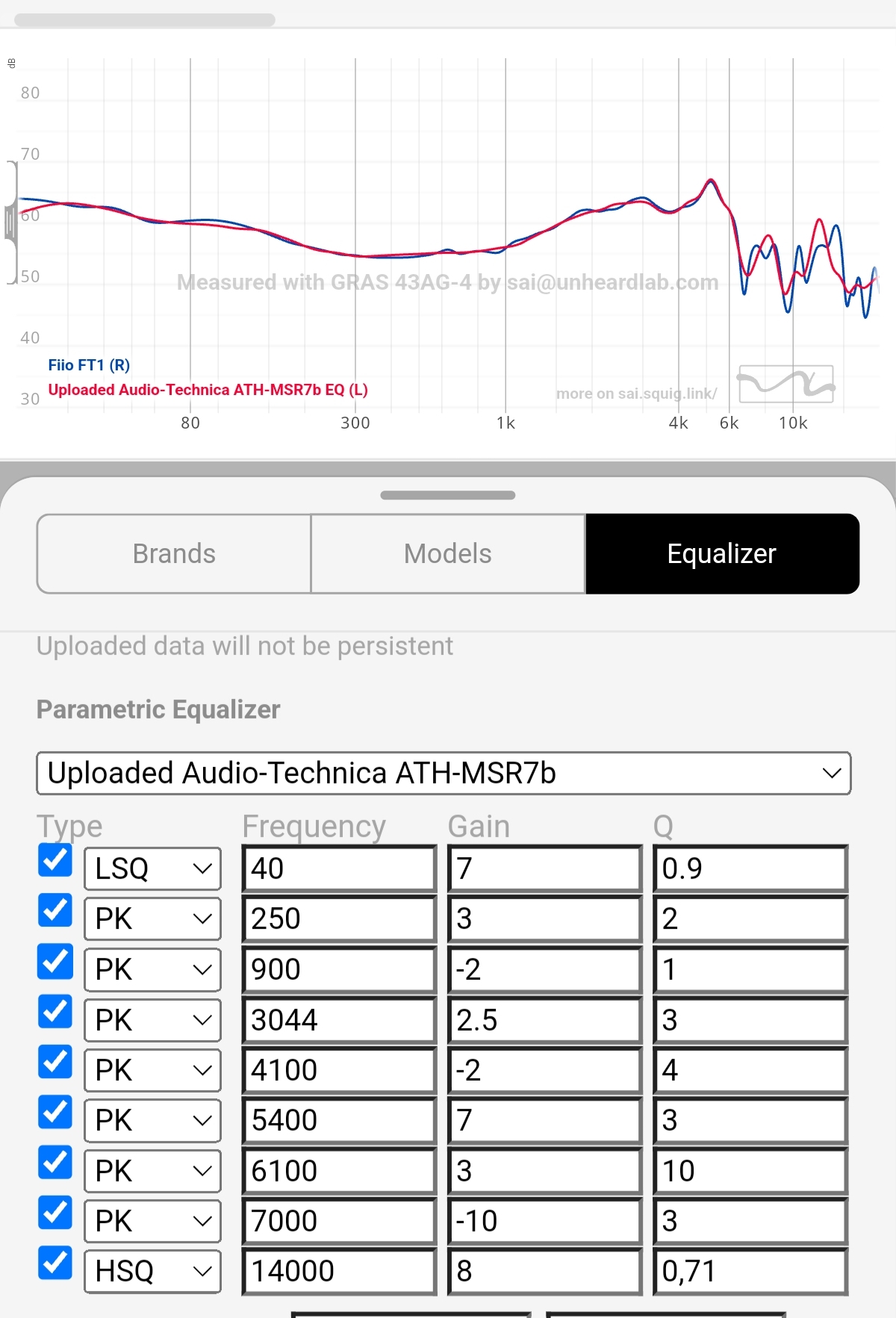Тут нормальный замер на грасе https://sai.squig.link/?share=FT1 Оно +- совместимо Если сделать таки руками, получится чуть ближе к реальности. Потому что на высоких частотах нужно снижать точность и эквалайзить более широкими мазками