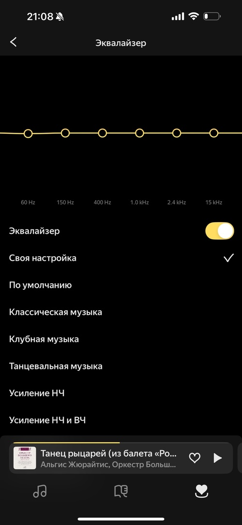 У Айфона просто очень ограниченные возможности к эквалайзингу. Системных эквалайзеров в принципе не существует. В плеерах и стримингах большинство халтурит и в лучшем случае там 10 полос, чаще даже 8 нет
