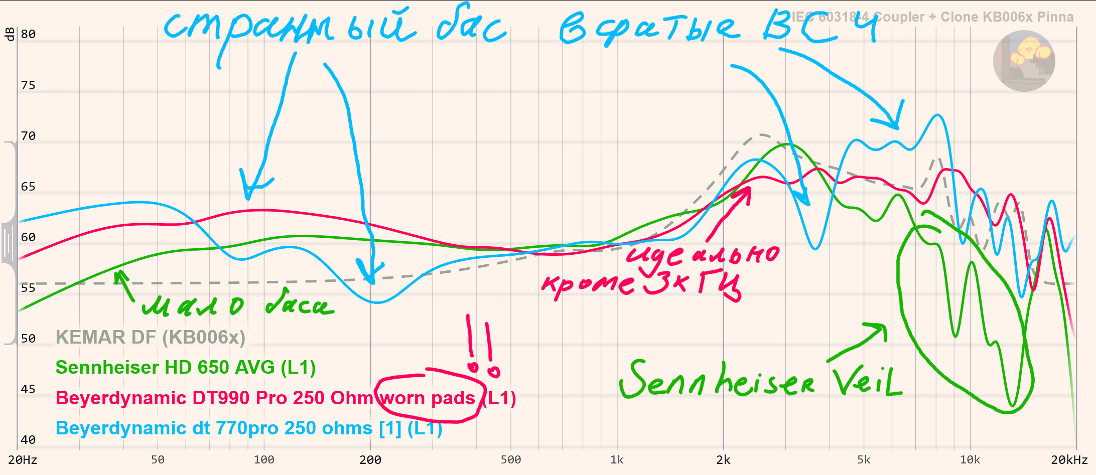 >>7276754 >Он же давал им слушать синусы емнип. Да хоть белый шум гоняй. >Мне сложно Заёрзал? ЧТД >Чтобы уметь читать графики, нужно уметь на слух по музыкальному материалу составлять свои? Нужно понимать какой диапазон частот за что (слышимое) отвечает. Нужно понимать сколько дБ будет слышно сколько нет. Нужно понимать влияет ли (и насколько сильно) провал/подъём на субъективно-воспринимаемую АЧХ или нет. Нужно понимает что (провал/подъём) что (какой другой провал/подъём) компенсирует или усиливает. И еще куча всего, чего ты не делаешь, но уже кукарекаешь за графики. Винтики и гайки (инструмент) для сборки синхрофазотрона (опыта и отращивания скила по чтению графиков) дал. >Не туда воюешь. А какого хрена тогда отвечаешь за него? >на графики сделанные на усредненном стенде? Ряд ноунеймов с разными стендами - устреднёный. Вас понял. >Не бомбит у тебя, да? С чего бы? Это констатации факта. >Сам там Поссал на тебя. Обтекай. >>7276767 Куда же графикодебил без само поддува... Хоть бы лирическую паузу выждал. Палишься.