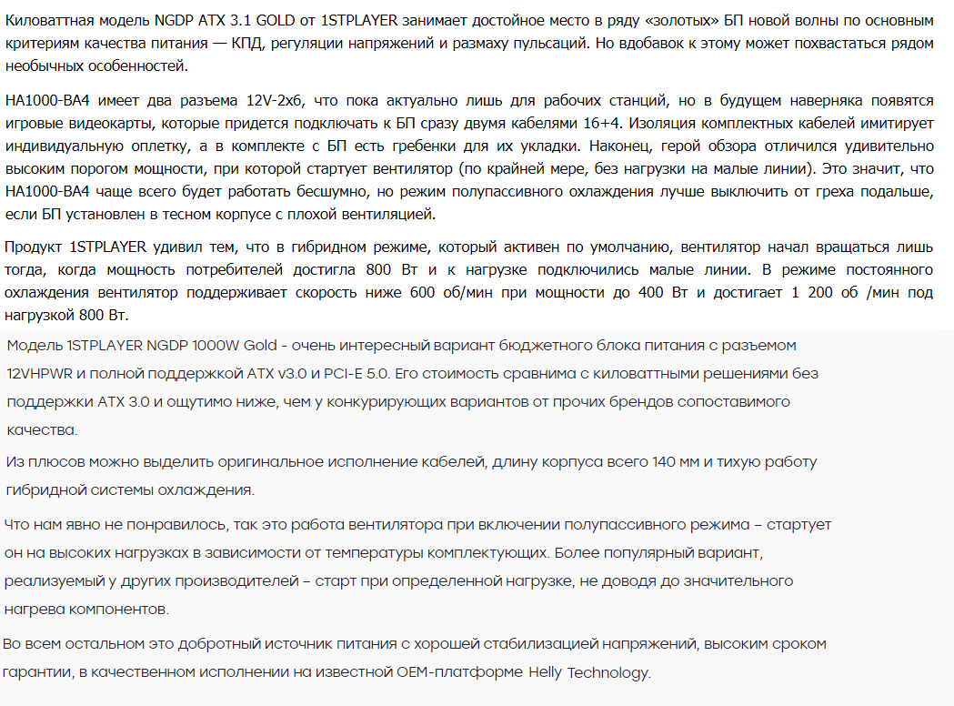 Если вы все же решились купить хороший бп, то универсальный совет который можно дать, это: apfc + llc по входу, sr + dc-dc по выходу, по возможности японские кондеры не только на большой банке, но и на рассыпухе в круг, гидродинамический подшипник в вертушке.