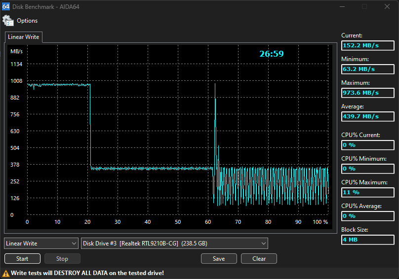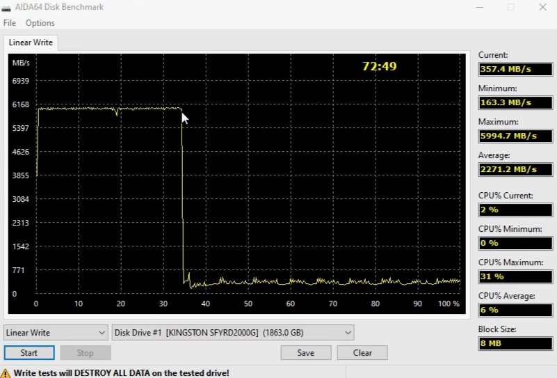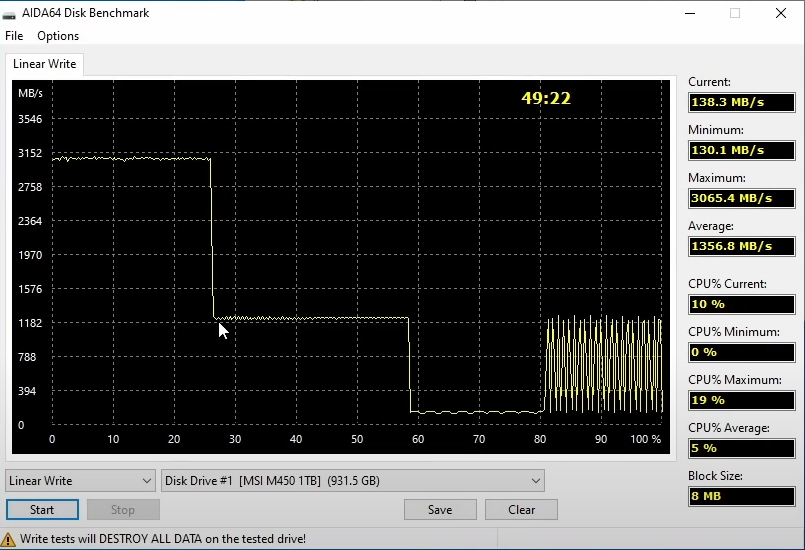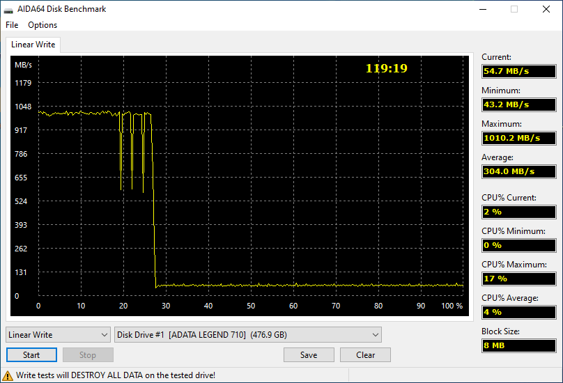 9) Не стоит путать DRAM-буфер и SLC (Single-Level Cells)-кэш. Последний есть у всех устройств с TLC и QLC памятью. Представляет собой временную запись данных на выделенную часть NAND-памяти в самом скоростном однобитовом режиме (1 бит в ячейку) для последующей медленной перезаписи 3-х (TLC) или 4-х (QLC) бит в ячейку. Именно SLC-кэш позволяет достигать огромных скоростей. Тогда как запись непосредственно в TLC и QLC в разы, а то и десятки раз ниже - её ты можешь увидеть после исчерпания кэша. Размер SLC-кэша может быть разный, включая динамически изменяемый с различными алгоритмами, тут без чтения обзоров на «железных» ресурсах не обойтись