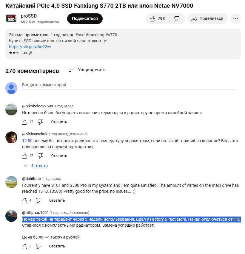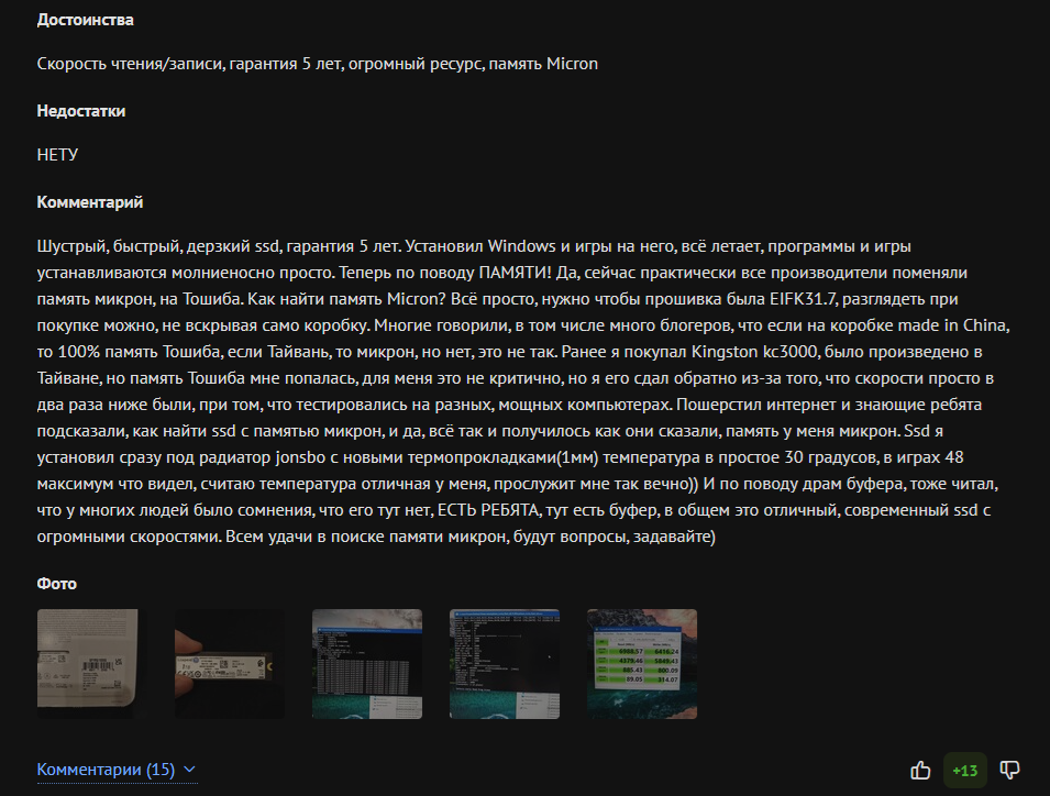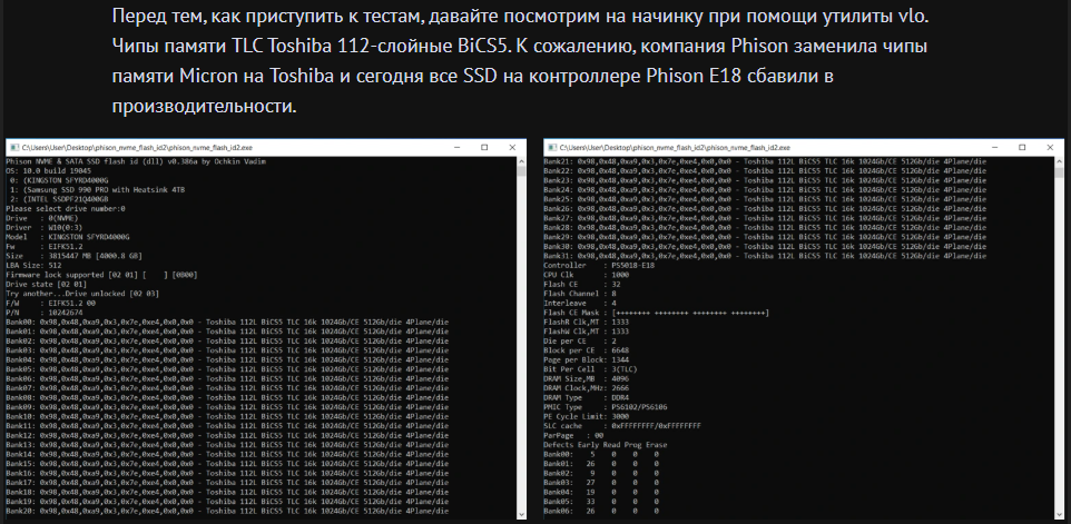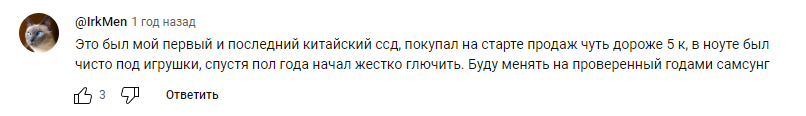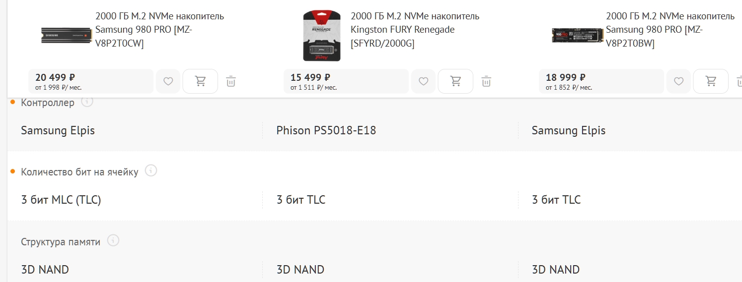 3) Не бери дешёвые китайские и тайваньские диски с заявленными хорошими контроллерами, скорее всего там обман и будет стоять дешман (например, SM2258XT вместо указанного SM2258). Хороший контроллер недёшев, ориентируйся по ценам конкурентов