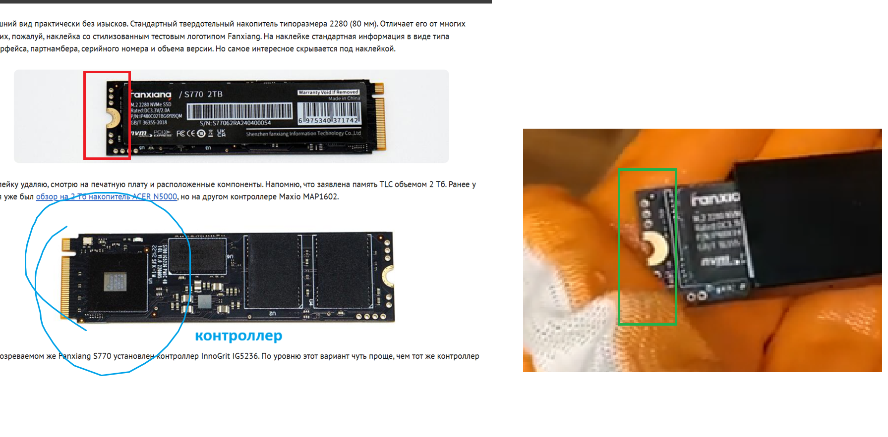 7) Инфу о железе без снятия радиатора и наклейки можно получить с помощью утилит от Вадима Очкина http://vlo.name:3000/ssdtool/ (для чего нужно знать модель контроллера) или в обновляемой таблице https://docs.google.com/spreadsheets/d/1B27_j9NDPU3cNlj2HKcrfpJKHkOf-Oi1DbuuQva2gT4/edit#gid=0