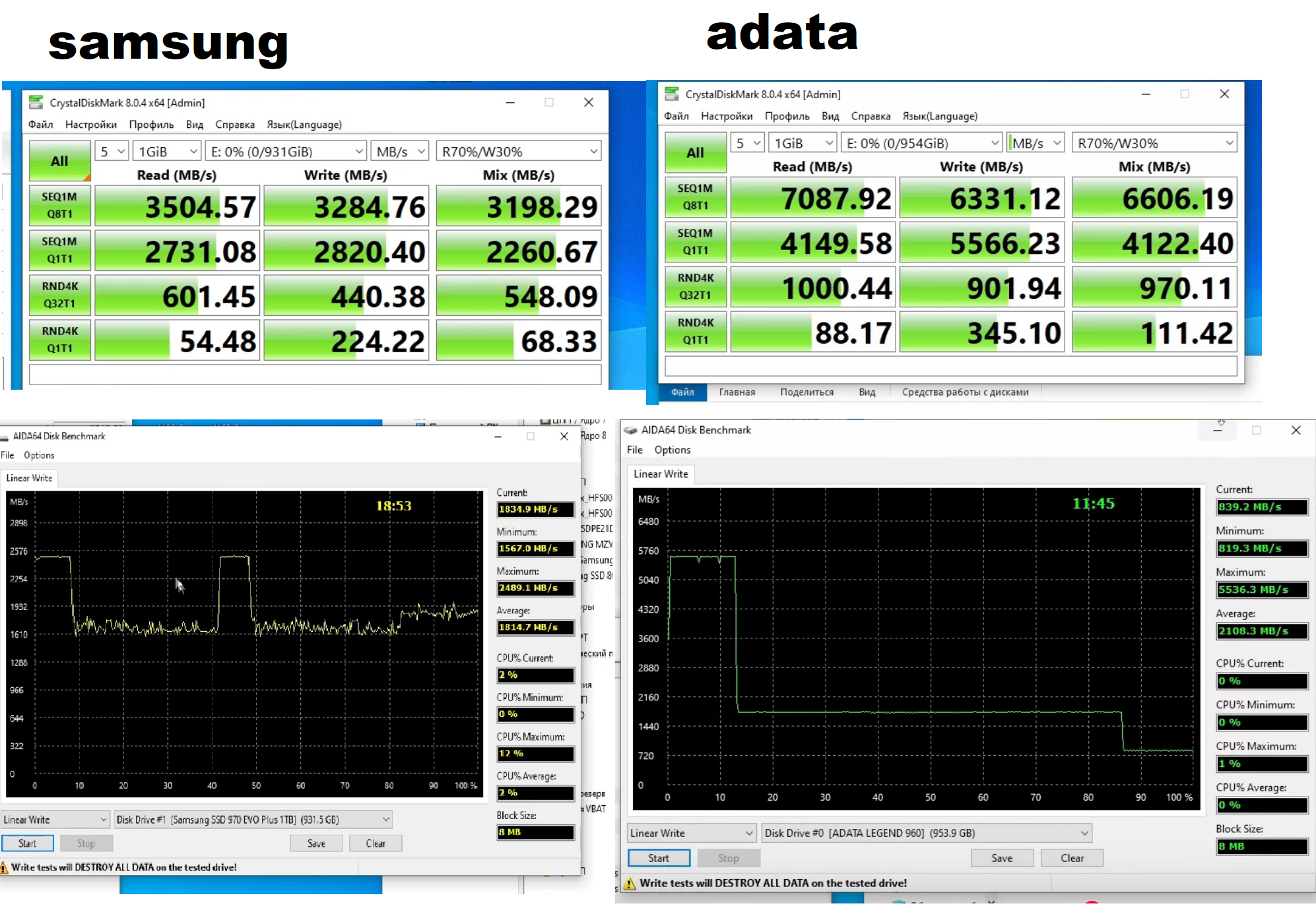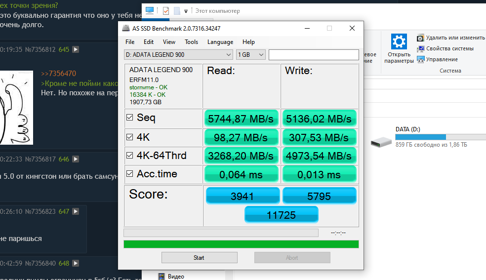 • Adata Legend 960/Adata Legend 960 MAX (PCI-E 4.0, Micron TLC 176L, DRAM, контроллер SM2264)