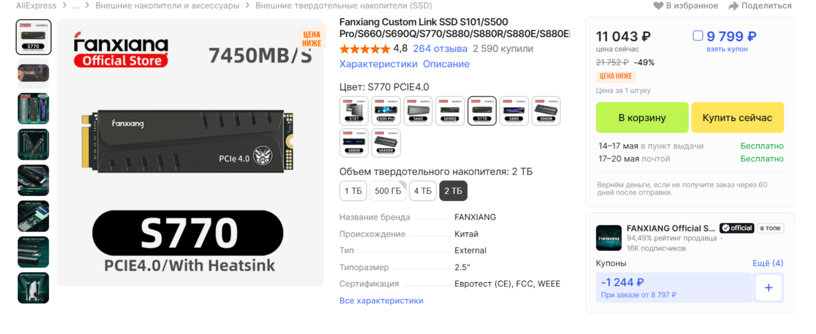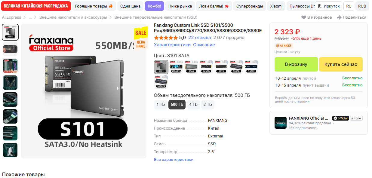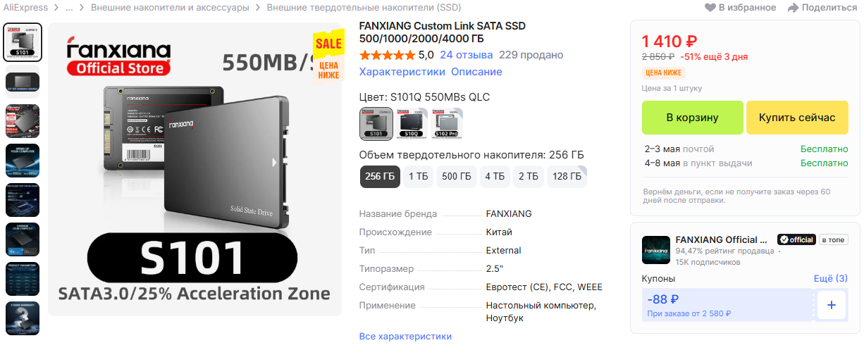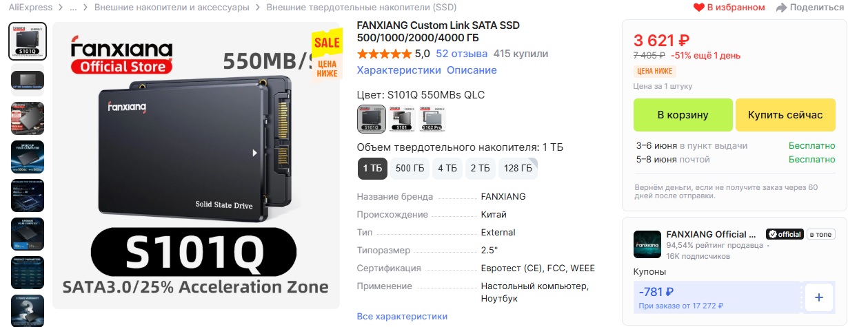 11) Цены на AliExpress снова стали привлекательными. Но стоит быть аккуратным в отношении характеристик и компонентов китайских SSD