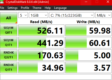 • SK hynix Gold P31 (SK hynix TLC 128L, DRAM, контроллер Cepheus; имея 4-канальный контроллер, сопоставим по проиводительности с хорошими TLC SSD с 8-канальными контроллерами из-за высокой скорости интерфейса самой NAND памяти)