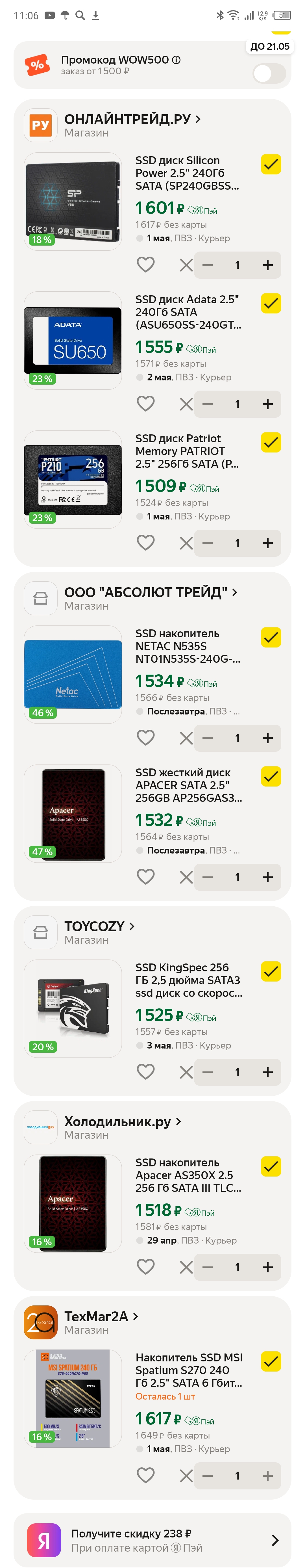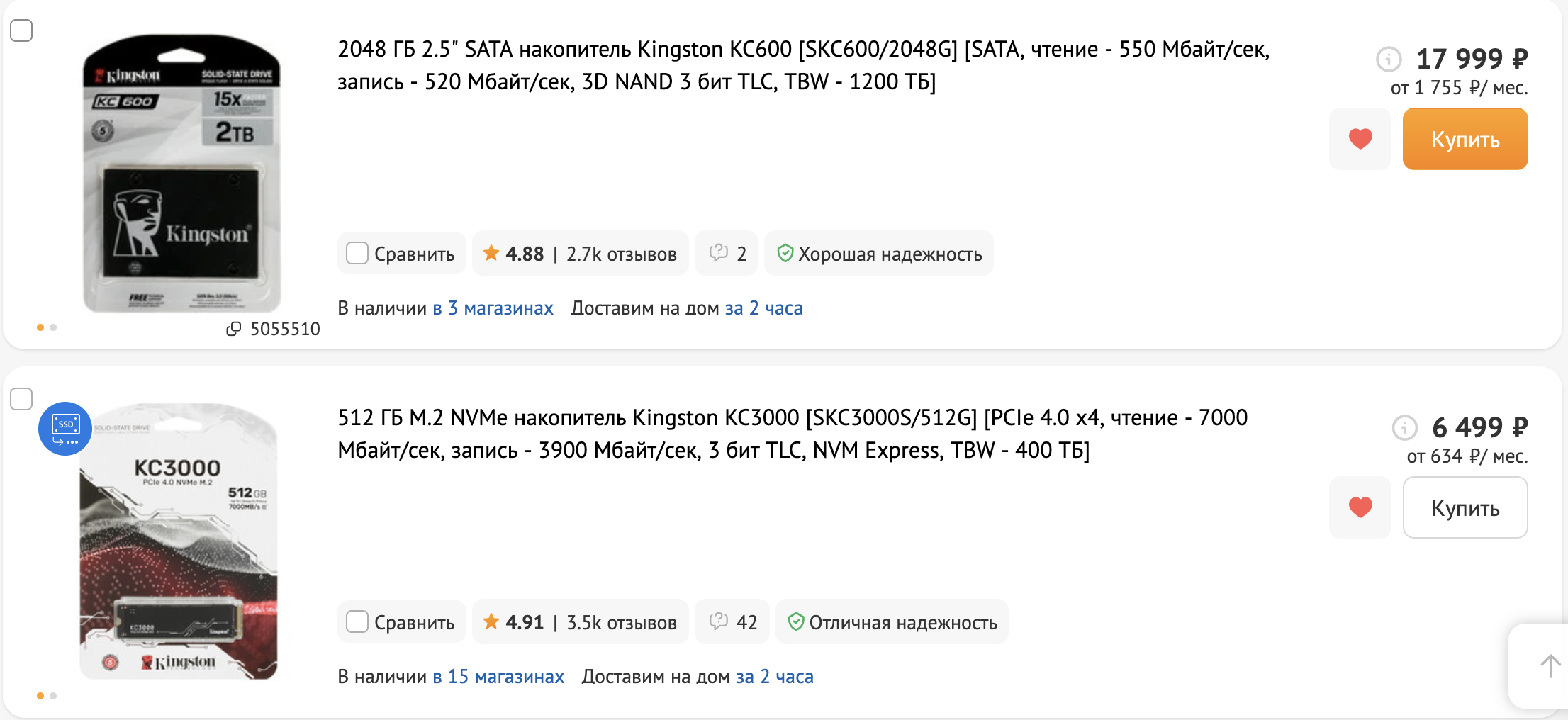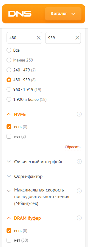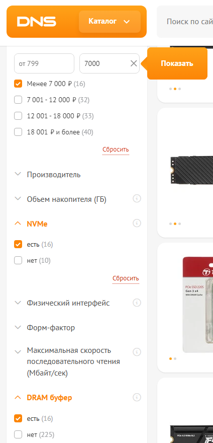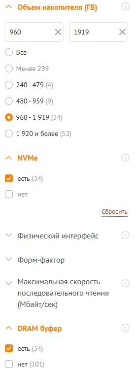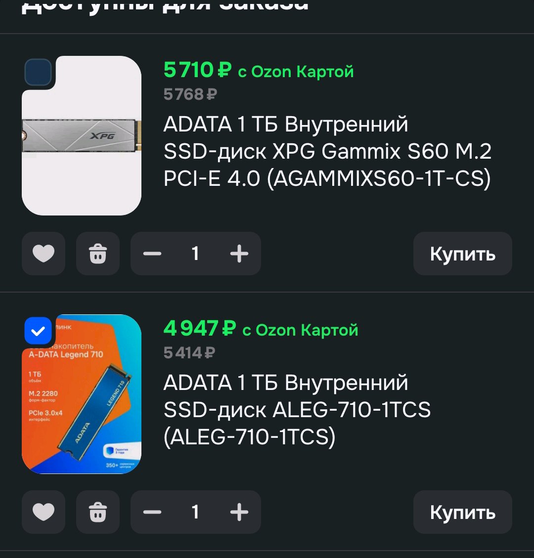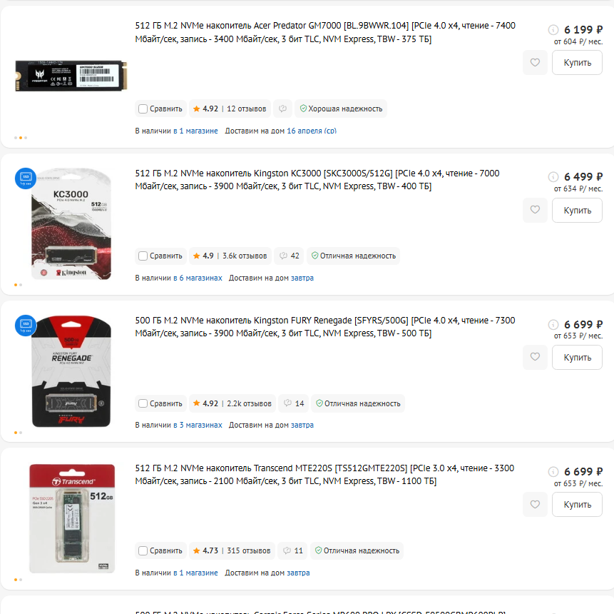 Выбирай из шапки из раздела NVMe годнота.