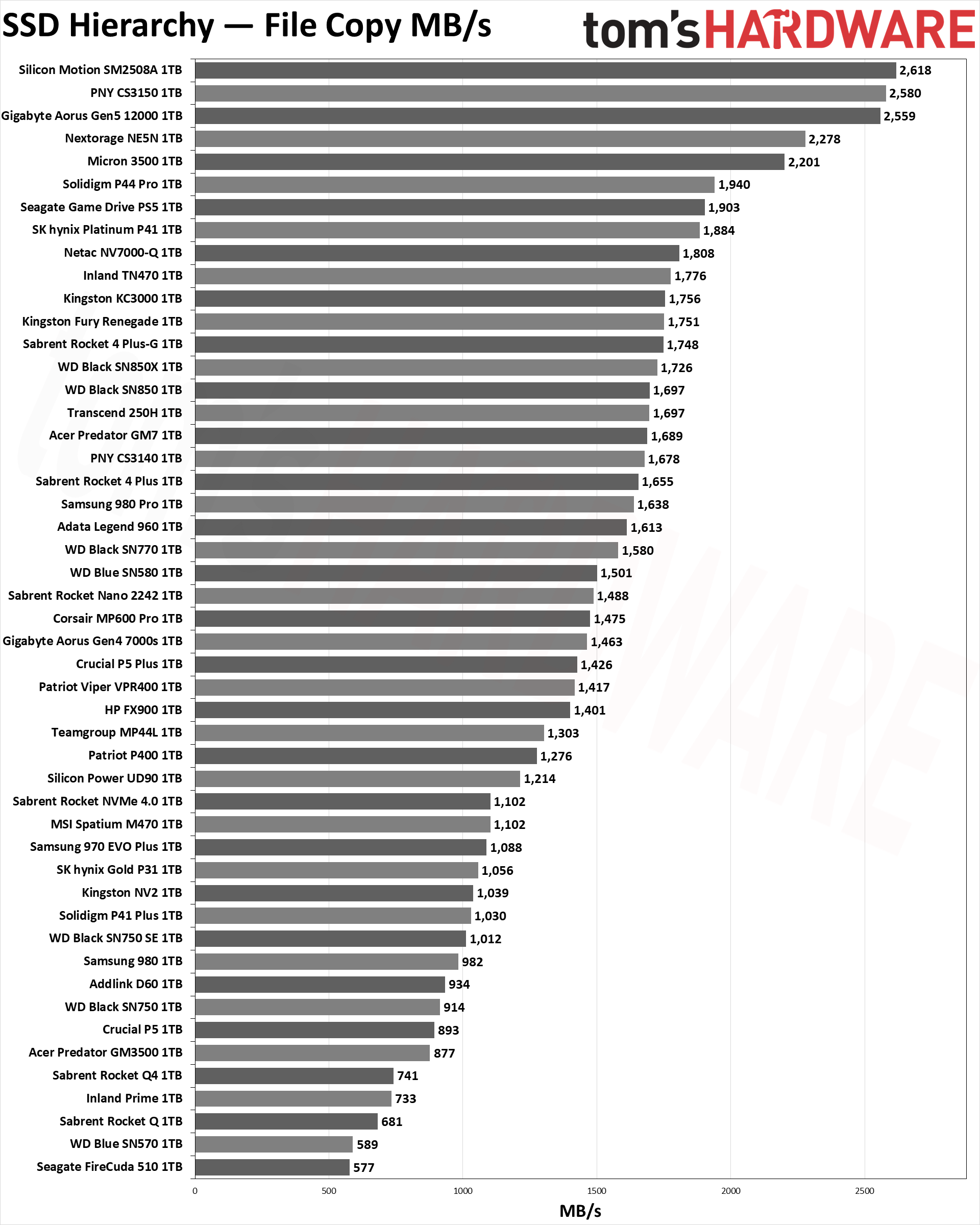 2021, тест 25 SATA SSD 1 ТБ: https://3dnews.ru/1040505/