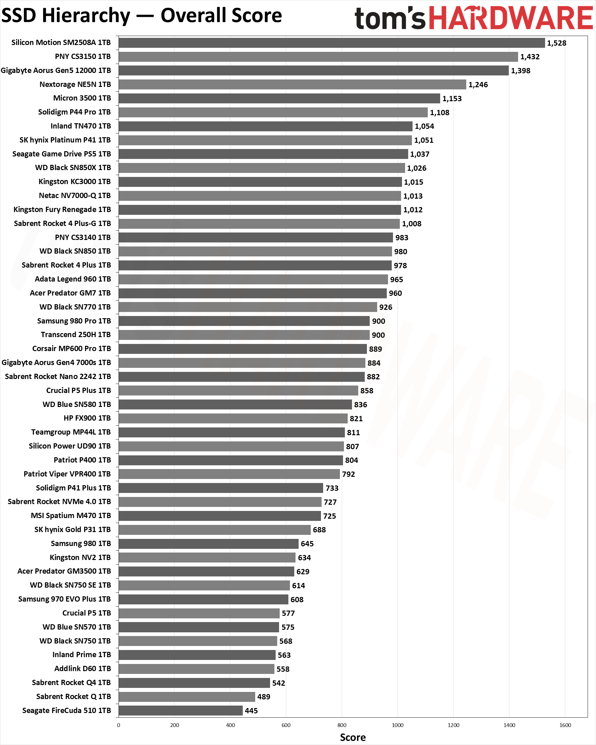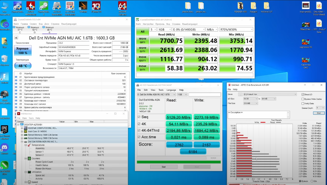 • Corsair MP600, Gigabyte Aorus NVMe Gen4, Smartbuy Impact E16, Patriot Viper VP4100, ADATA XPG GAMMIX S50, Seagate FireCuda 520, Goodram Irdm Ultimate X (PCI-E 4.0, TLC Kioxia, DRAM, контроллер PS5016-E16; близнецы с равными характеристиками)