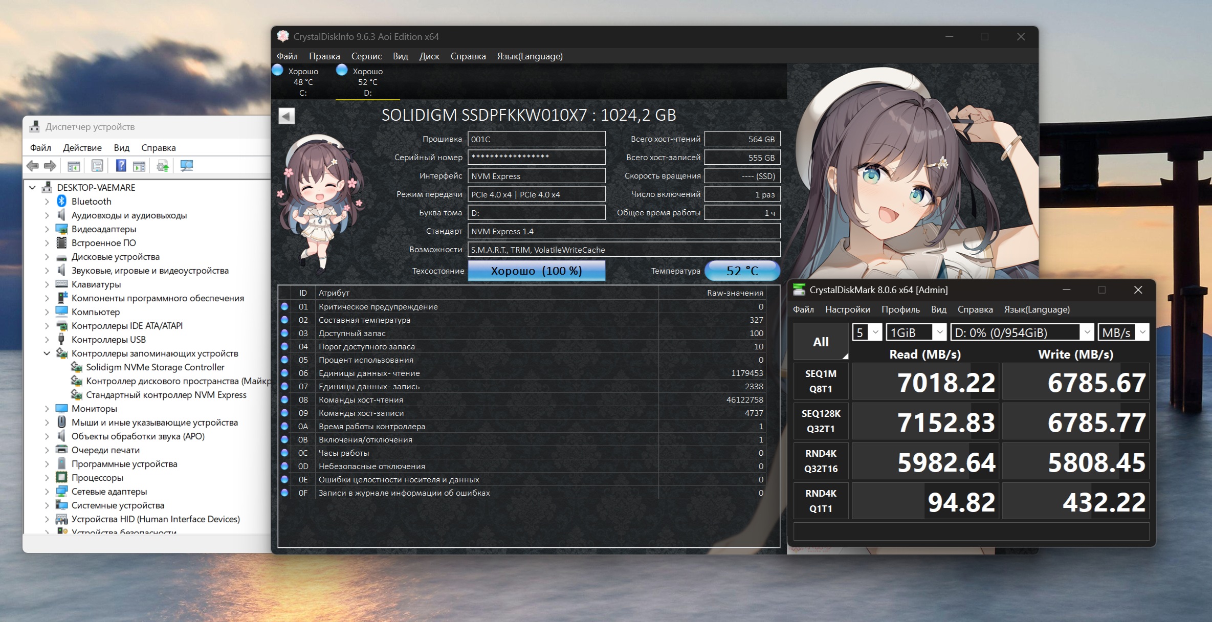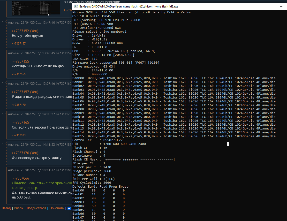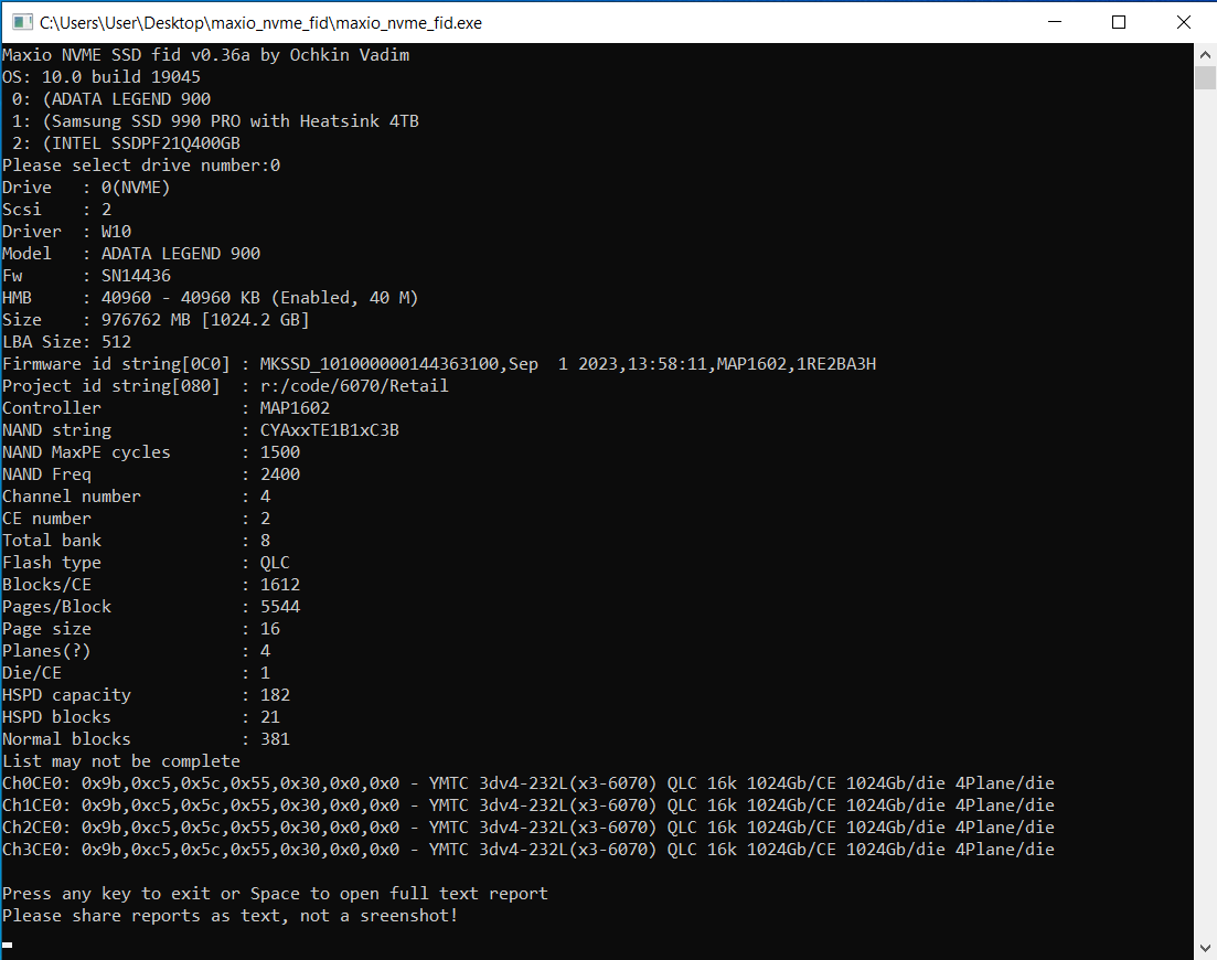 • Lexar NM790/Fanxiang S790/Netac NV7000-t/Acer Predator GM7/HP FX900 Plus/ADATA Legend 900/Movespeed N7000/Asgard AN4+/Hikvision G4000/Kingspec XG7000/Digma Meta M6/Colorful CN700 Pro (PCI-E 4.0, YMTC TLC 232L, HMB, контроллер MAP1602)