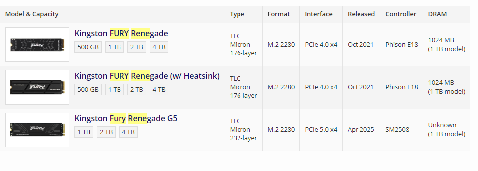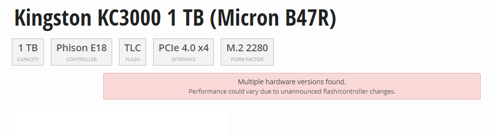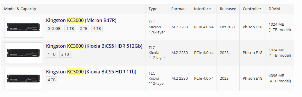 • Kingston KC3000/Kingston Fury Renegade/Corsair MP600 PRO XT/Seagate FireCuda 530/MSI M480/Digma Top P8/Digma Pro Top P8 (PCI-E 4.0, Micron TLC 176L 512 Gbit, DRAM, контроллер PS5018-E18)