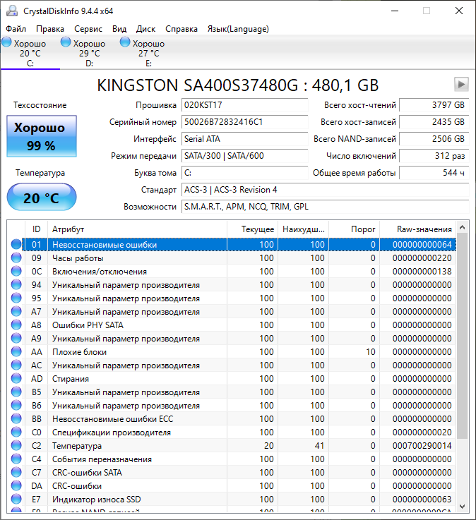 • Kingston KC2500 (Kioxia TLC, DRAM, контроллер SM2262EN)