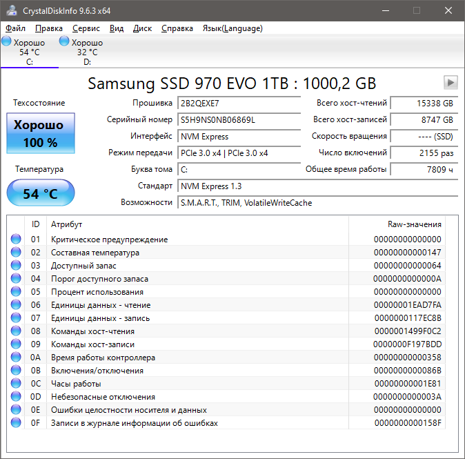 • Samsung PM981a (Samsung TLC, DRAM, контроллер Elpis; OEM вариант 970EVO Plus, Migration tool и Magician его не поддерживает)